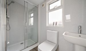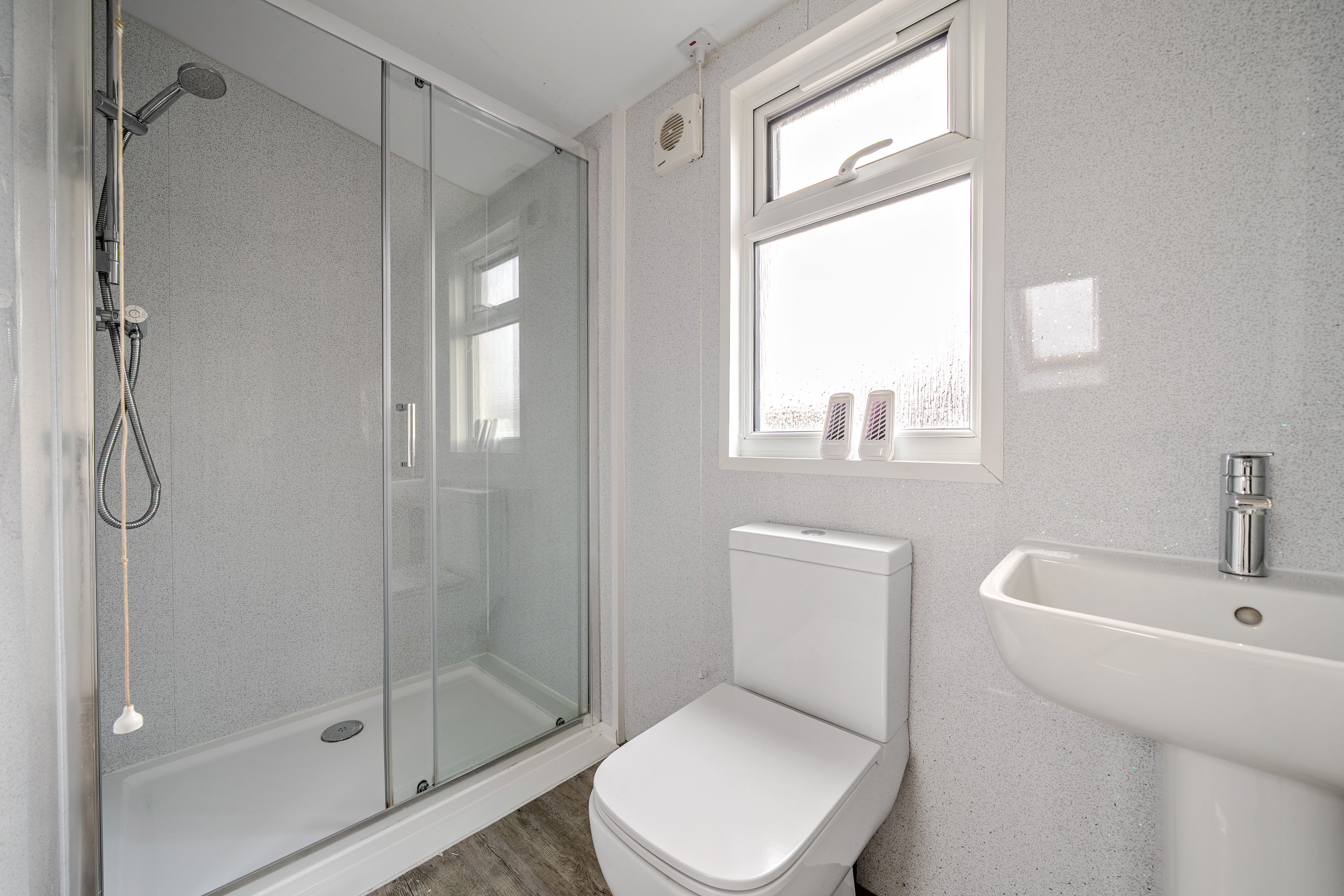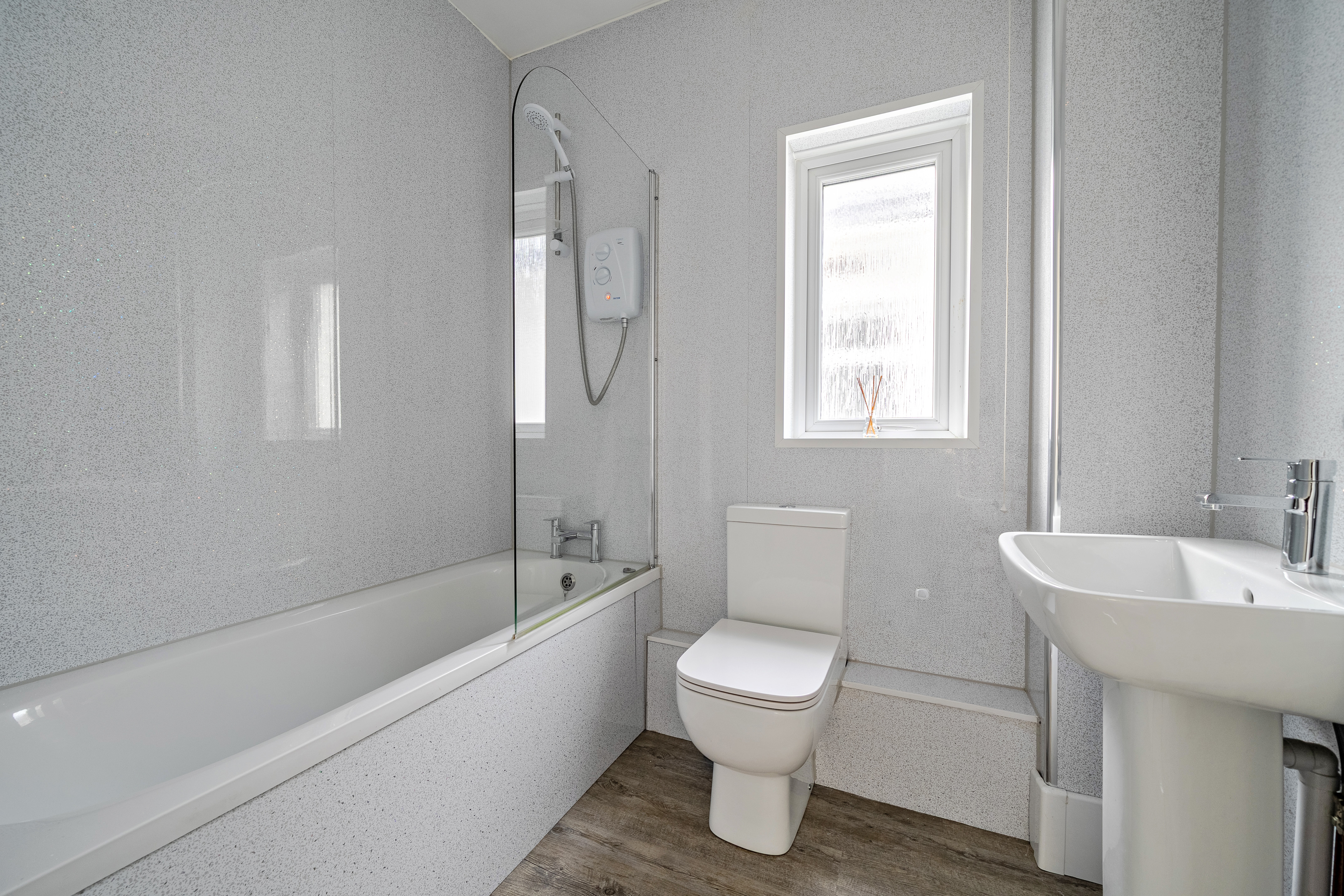 Step inside and you immediately feel the space this detached chalet bungalow offers. At the front of the home, two bright double bedrooms with large bay windows are perfect for early risers, a cosy reading corner, or even a home office. The ground floor bathroom is modern and practical, with a bath, overhead shower, wash basin, WC, and stylish wall panelling.