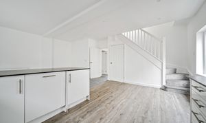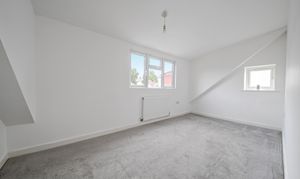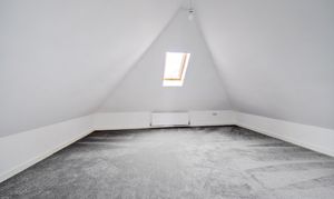 Upstairs, the principal bedroom overlooks the front of the property with a sleek Velux style window, letting in plenty of light. Two more double bedrooms sit to the rear, alongside a second modern bathroom with a double shower and contemporary fittings, ensuring there’s space for the whole family.