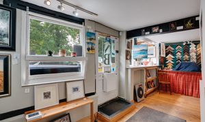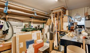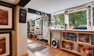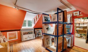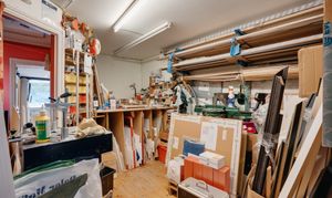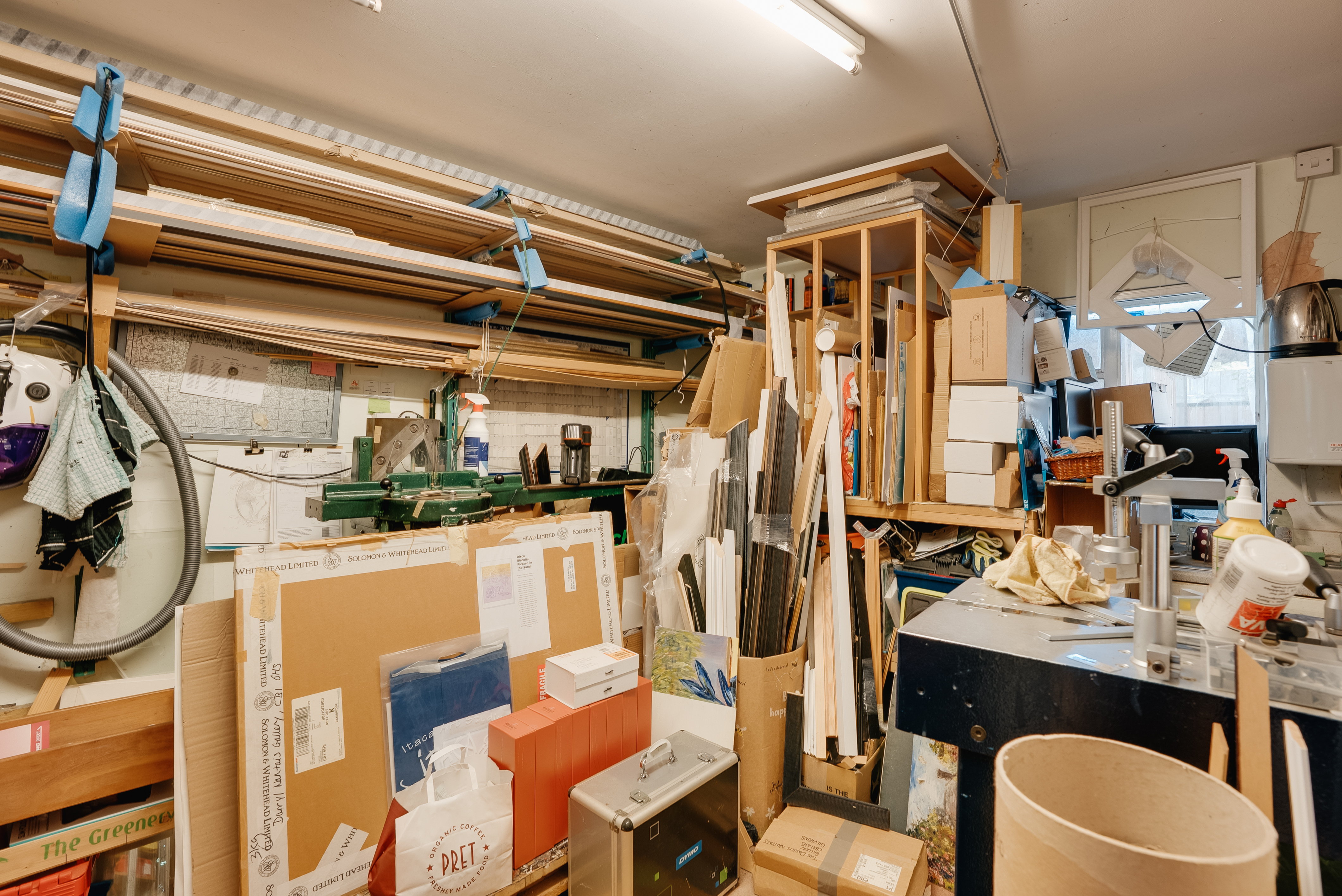 The first floor, measuring around 325 sq ft, offers two characterful open workspaces with sloped ceilings, exposed beams, and traditional leaded windows, providing ample natural light– perfect for office, studio, or creative purposes. There is also an additional storage cupboard.