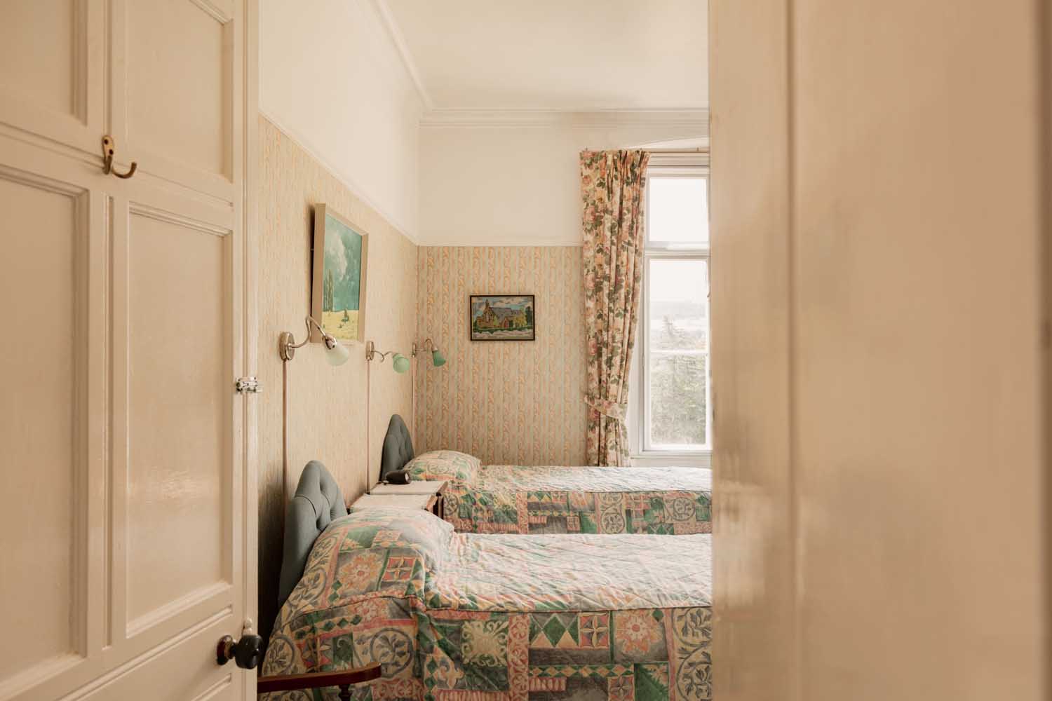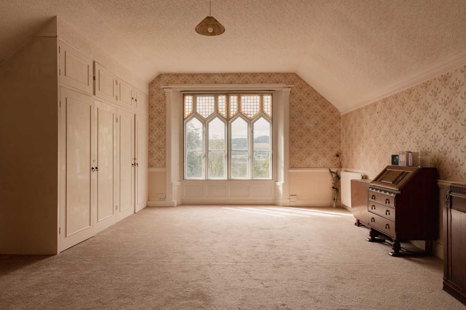 Rising further, the entire second floor is currently configured as a self-contained apartment with kitchen, sitting room, bedroom and bathroom. These rooms are thought to have originally formed the nursery, playroom and governess’s accommodation, and today present outstanding potential for reimagining as a dramatic principal suite. With ample space for bathing, dressing and lounging, and centred on a striking full-height feature window framing elevated views over the Tyne Valley, this floor offers the opportunity to create a remarkable contemporary retreat within the historic fabric of the house.