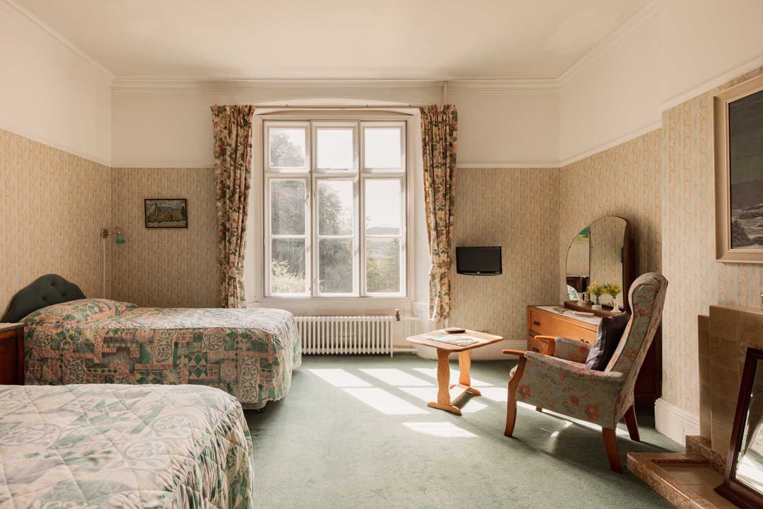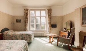 The first floor provides generous family accommodation, arranged around a wide landing. To the rear are three impressively proportioned bedrooms, two of which have open fireplaces and all enjoying long southerly views across the gardens and Tyne Valley. The western wing houses three further bedrooms and two additional bathrooms, with the original servants’ staircase providing direct access back down to the kitchen. Together, all bedrooms on this floor are served by either en-suite or family bathrooms.
