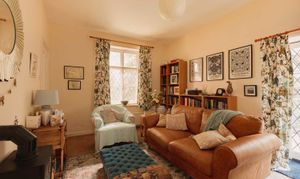 The bathrooms throughout the property, while serviceable, present an opportunity for redesign with modern fixtures and finishes. Throughout the house, period details such as decorative cornicing, stained-glass panels and original joinery have been carefully preserved, offering a rich framework for refurbishment.