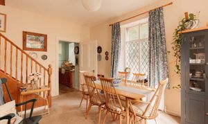 Hayes Lodge is a charming stone-built cottage that sits comfortably within the estate grounds, offering generous accommodation over two floors. The traditional layout opens with a welcoming porch leading into a dining room on one side and a well-proportioned sitting room on the other. The sitting room extends into a bright garden room, creating a relaxed space that draws in natural light and looks onto the gardens. To the rear, the kitchen is arranged in a more practical style, complemented by a utility area and bathroom that add everyday functionality. Upstairs, three bedrooms are served by a separate WC, making the property well suited for family living or longer-term stays.