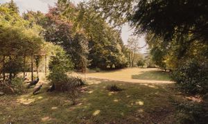 The Hayes sits within expansive, mature grounds extending to lawns, woodland and landscaped gardens. Approached by a short gravel driveway, the house stands in an enviable south-facing and gently sloping site, both private and sheltered, flanked to either side by mature woodland. The grounds extend to approximately 7.6 acres and enjoy uninterrupted views across green-belt countryside, stretching south over the River Tyne and valley. The aspect ensures long hours of light, with sweeping lawns framed by trees and planting. A variety of outbuildings and workshops provide useful ancillary space, while the tree-lined drive enhances the privacy and seclusion of the setting.