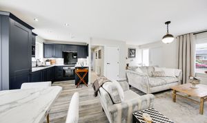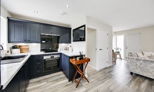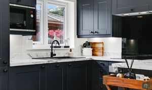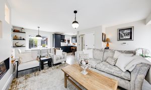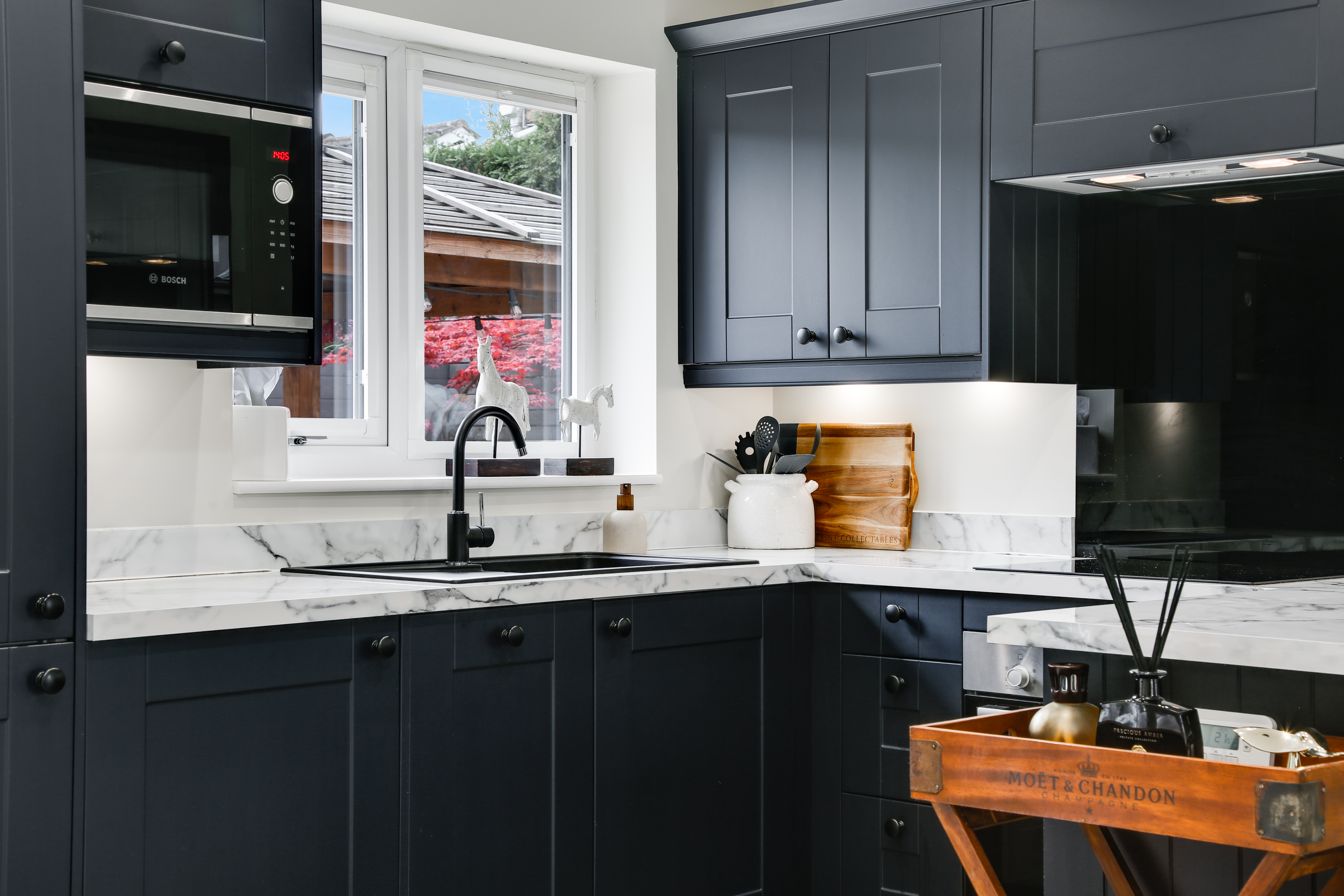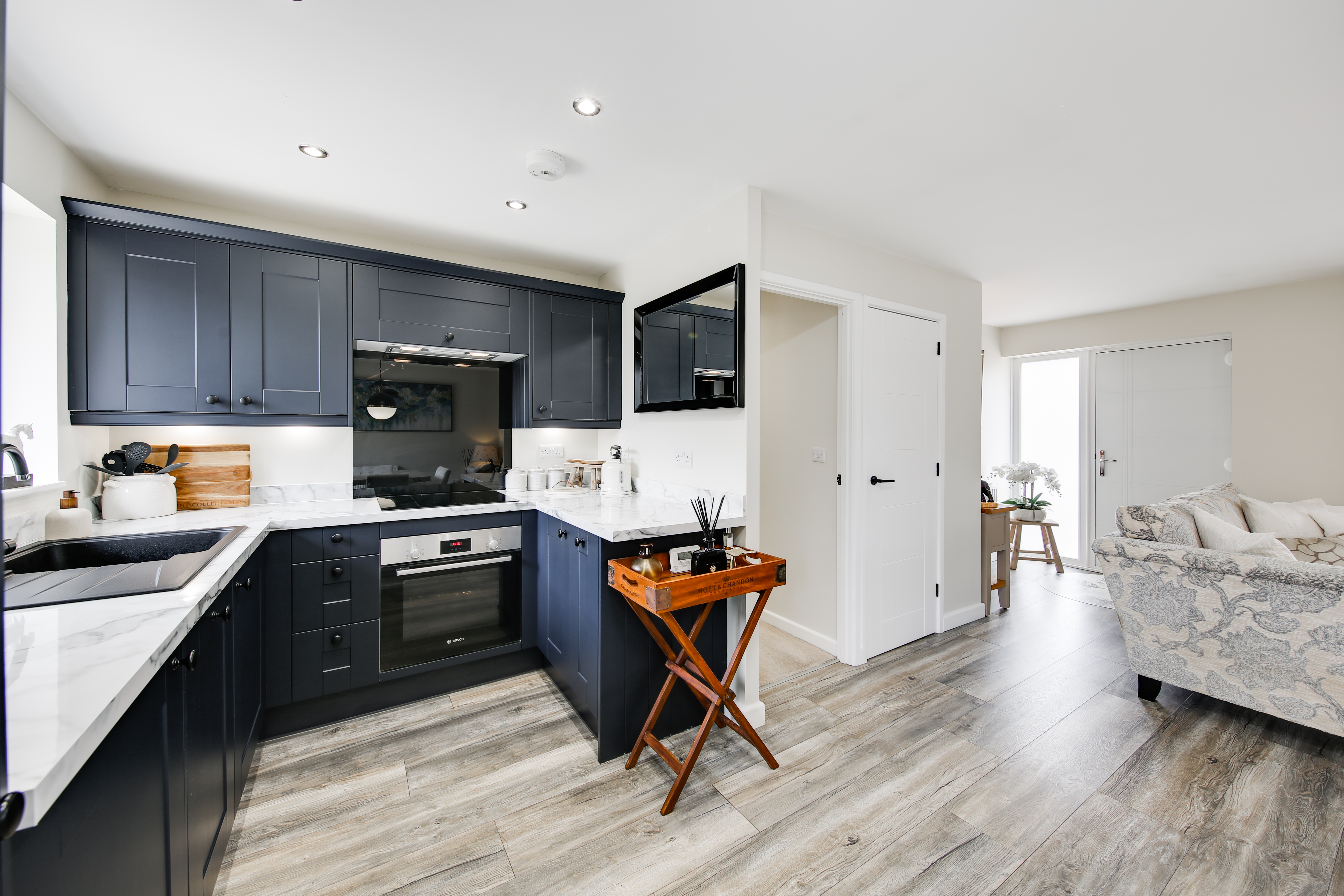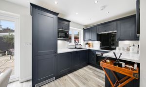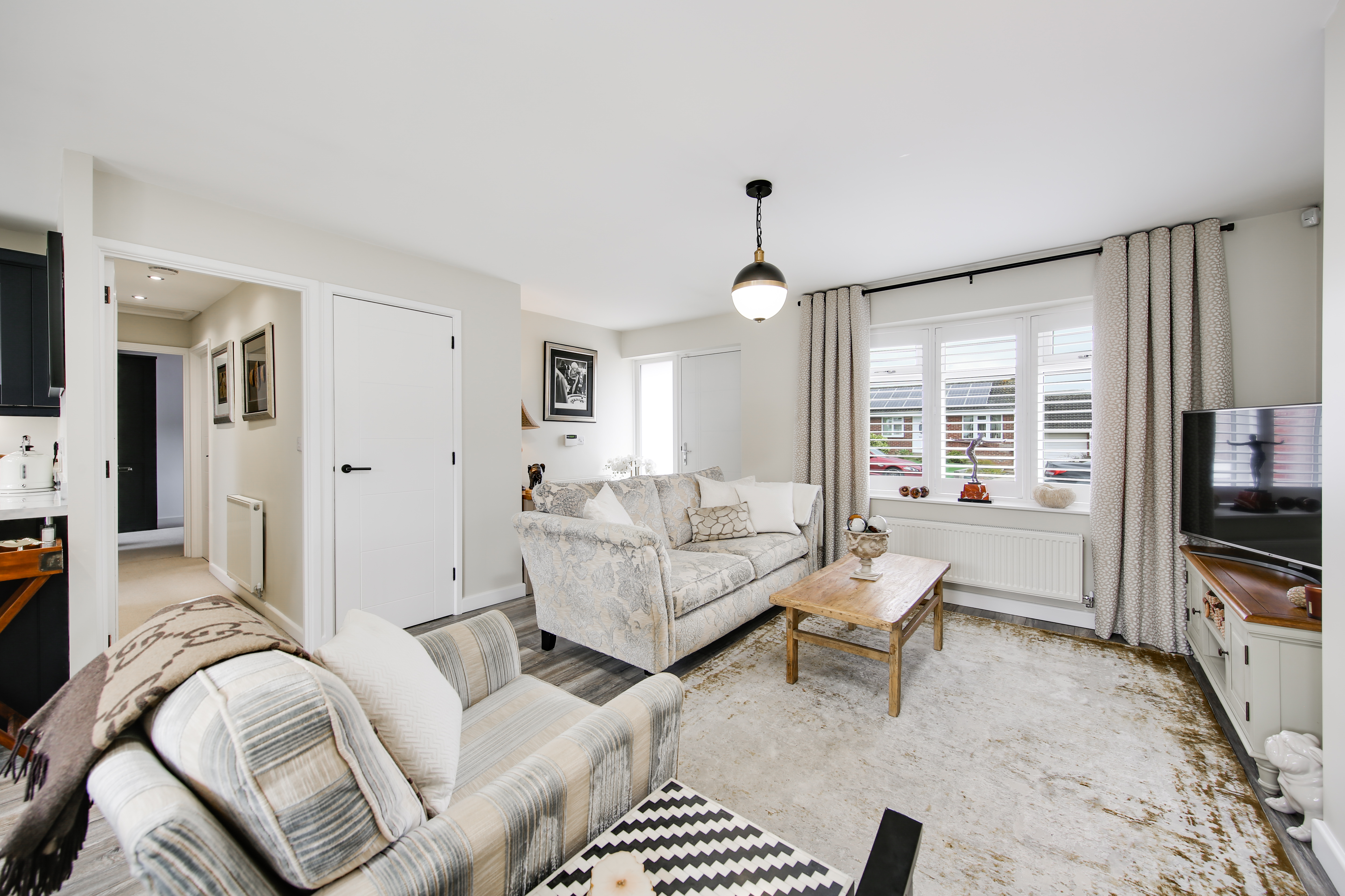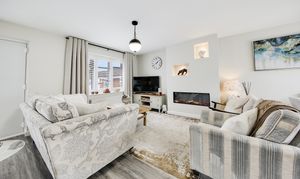 The property exudes elegance and style, boasting a fabulous open plan kitchen and living area. The contemporary designed kitchen features a full range of integrated appliances, quartz sink and marble laminate worktops, creating a space that is both practical and visually impressive. The attention to detail is evident throughout the home, a cosy living area with a feature lighting wall and electric fireplace complementing the accommodation. French doors from the dining area flood the space with natural light.