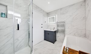Formally a three bedroom property, the sellers have re-configured to create two generously proportioned double bedrooms, of which provides the perfect dressing area with triple wardrobes. The layout is complete with the luxury bathroom, again another beautifully appointed space with larger than average bath, floor to ceiling tiling and separate shower.