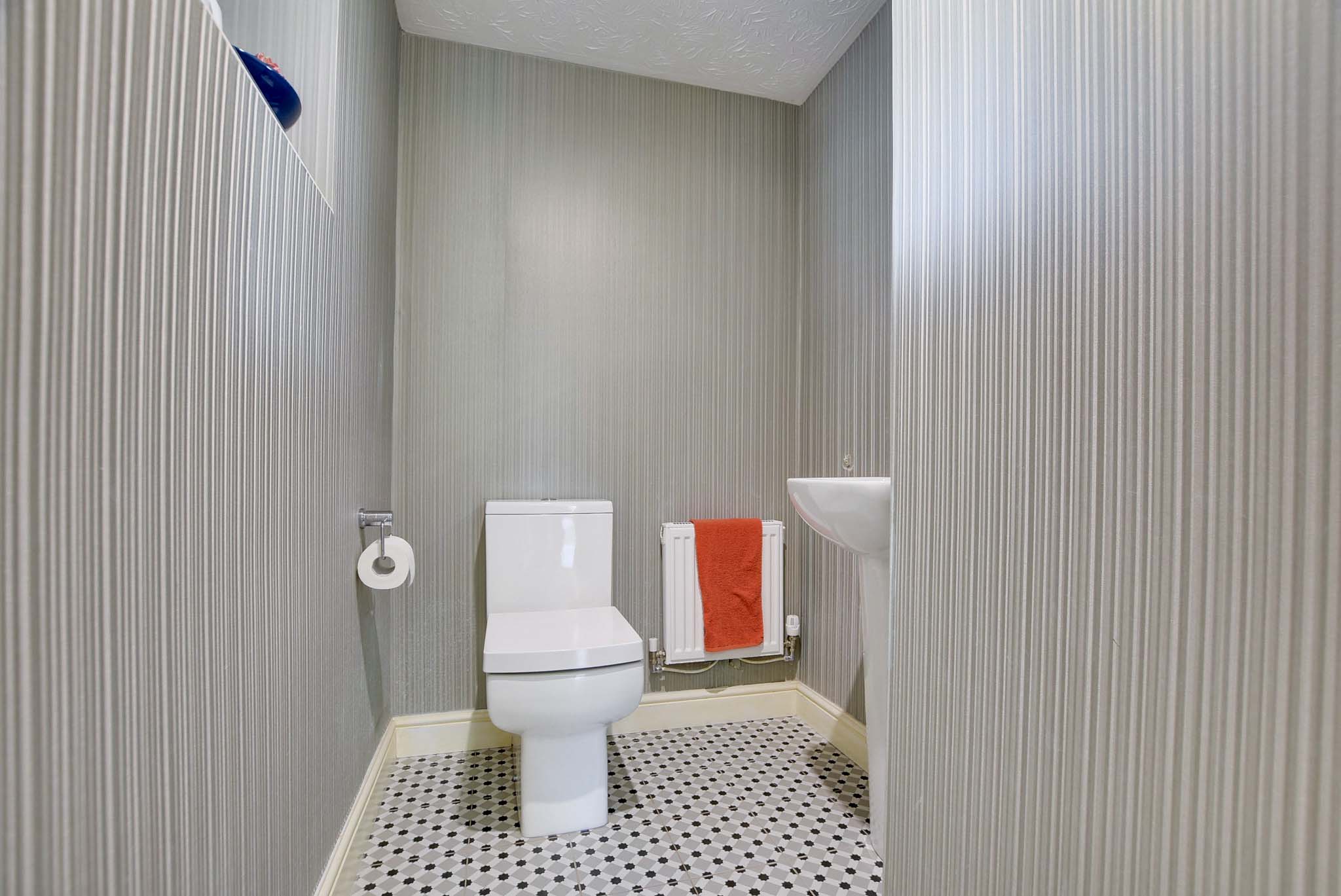 With double glazed window to the side elevation, tiled floor, wash hand basin, low-level WC, radiator.