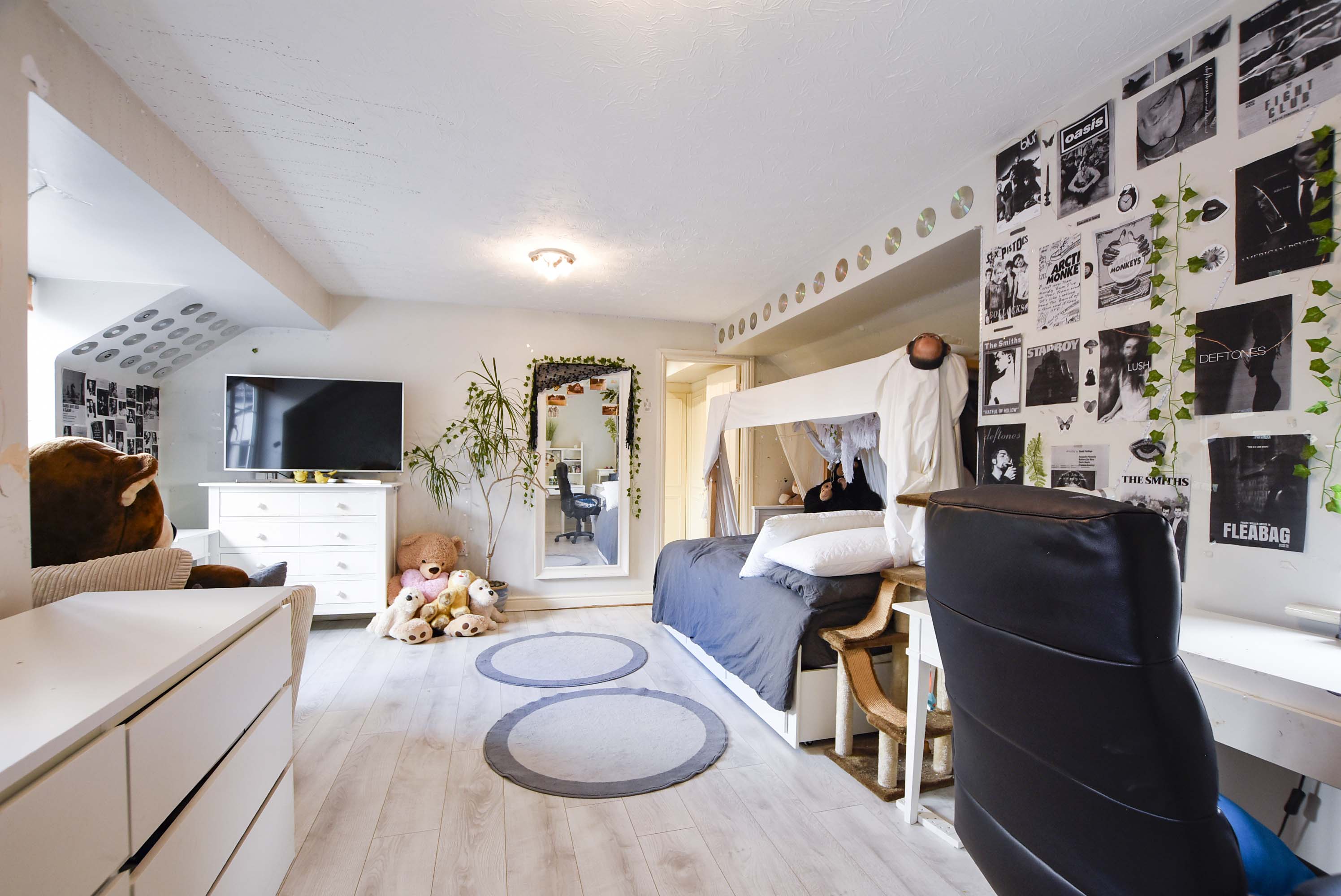 With two double glazed bay windows to the side elevation, laminate floor, storage cupboard, two radiators.