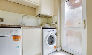 With double glazed door to the side elevation, tiled floor, wall and base units with work surface over, plumbing for washing machine, space for tumble dryer, sink and drainer unit, radiator.