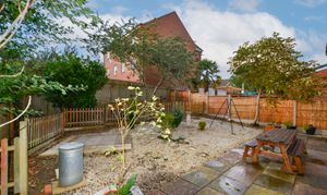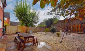 With side gated access, paved patio area, pebble area, shrubs, fencing to perimeter, fenced off flowerbed to the rear.