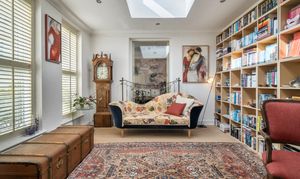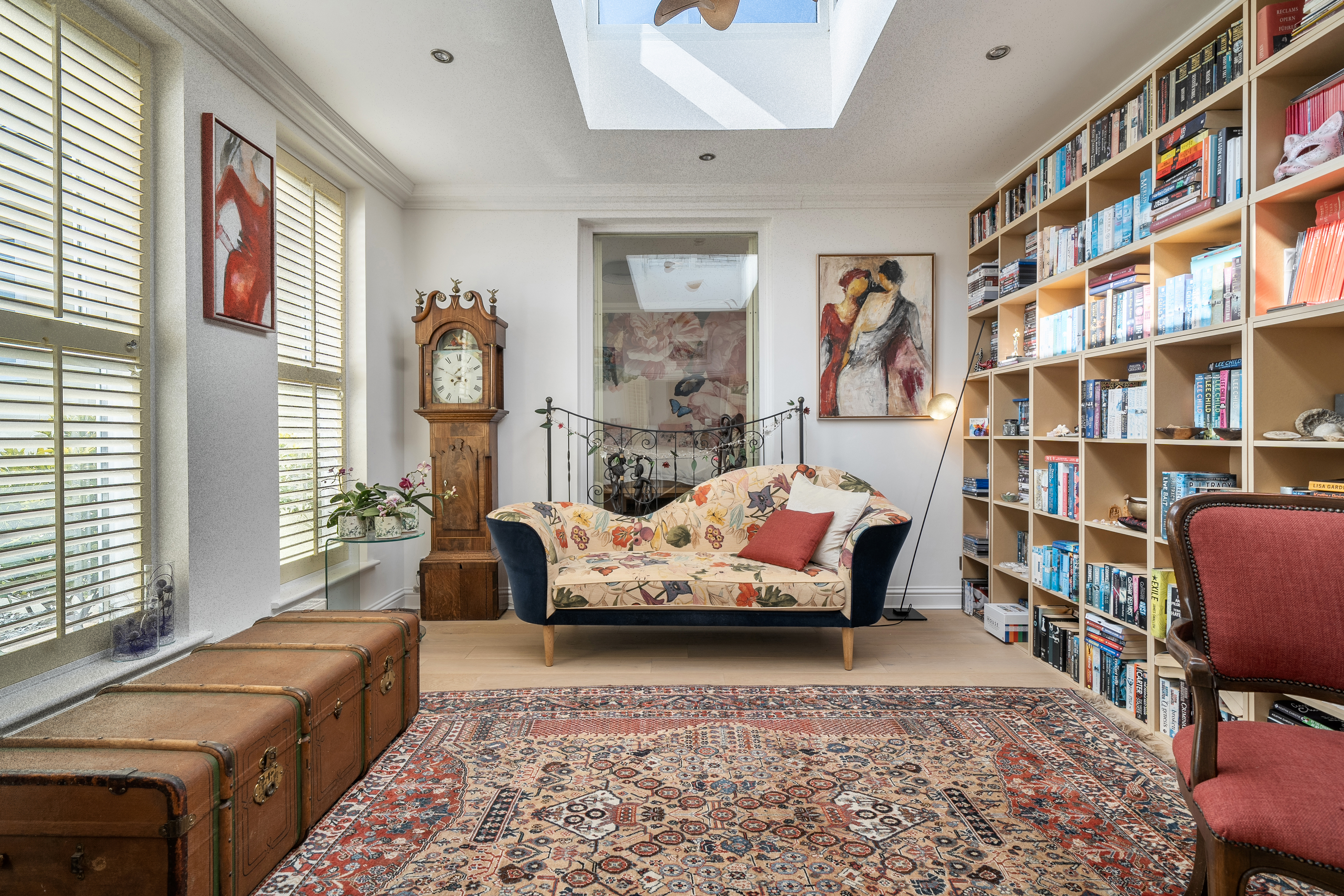 To the front, a beautifully designed snug with an atrium ceiling offers a cosy yet uplifting retreat—perfect for slow mornings with coffee or unwinding in the evening away from the main living space. The cloakroom, with its bespoke handmade sink inspired by tiles brought back from New Zealand, reflects the thought and individuality woven into every detail. A separate study provides a calm and inspiring place to work, with a view of the coastline towards Thatcher Point—a subtle reminder of the setting beyond. Both the snug and the study would equally work exceptionally well as bedrooms, offering further sleeping space if required.