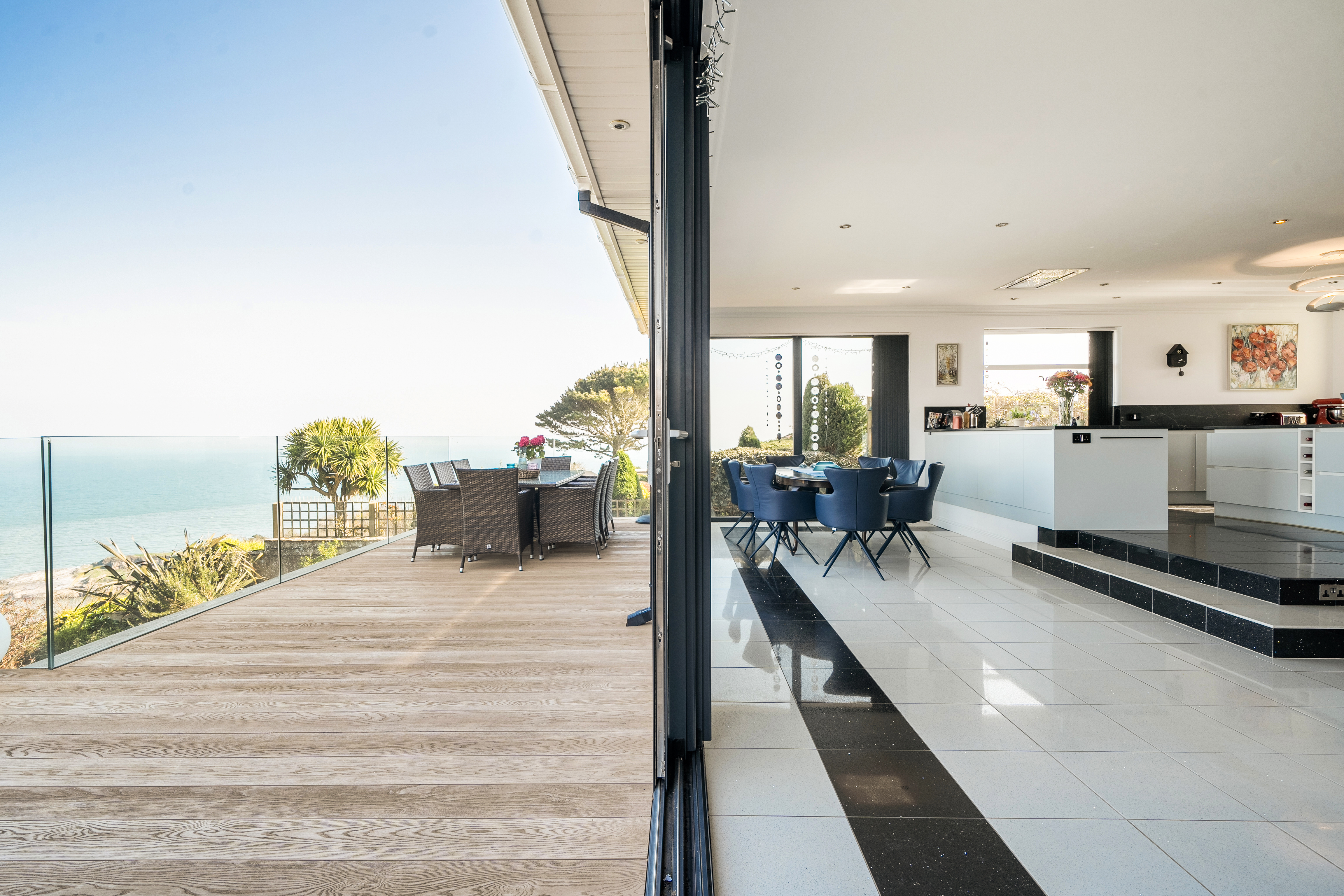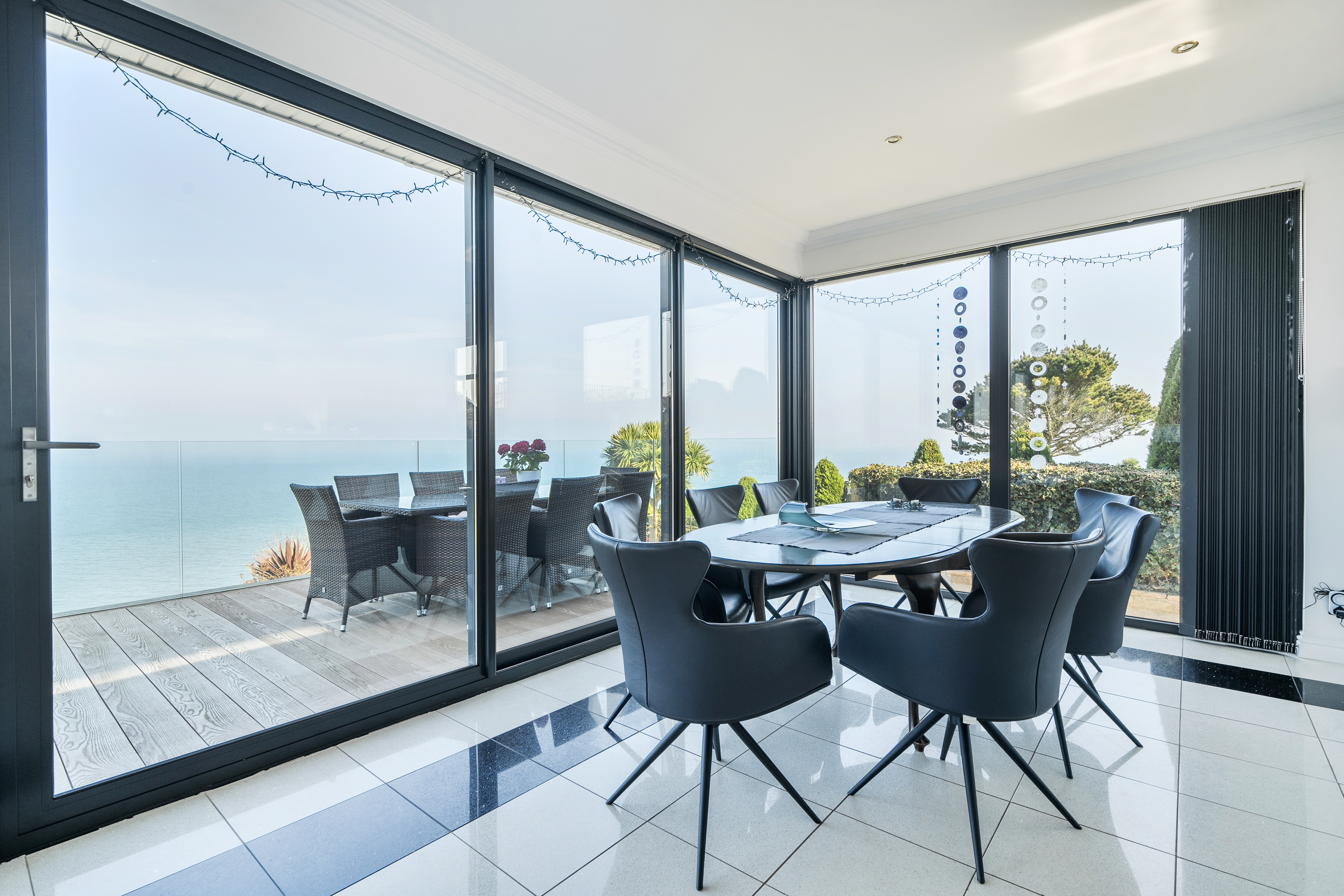 From the moment you step through the front door, the impact of the outstanding, uninterrupted sea views that form the home’s undeniable centrepiece is immediate—a stunning outlook that stretches endlessly across Lyme Bay. Immaculately presented throughout, the interiors are both stylish and spacious, with beautifully appointed open plan living, dining and kitchen areas designed for modern coastal living. Flexible luxurious accommodation includes three generous en-suite bedrooms and two reception rooms which could be used as additional bedrooms, all finished to an exceptional standard, creating a true turn-key home.