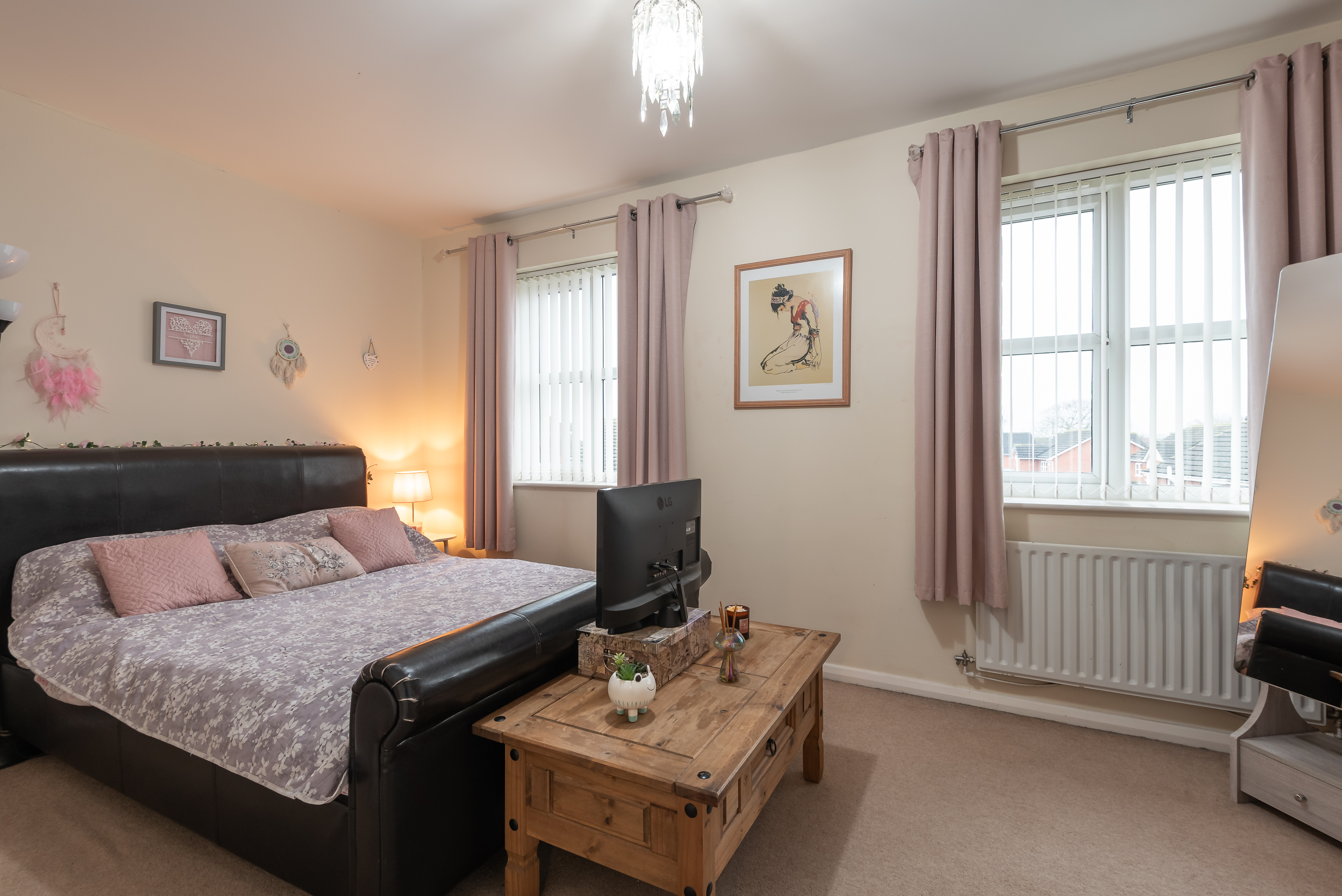 The first floor features a generously sized lounge, bathed in natural light from large windows overlooking the rear garden. The spacious master bedroom has its own en-suite and integral wardrobe, creating a retreat filled with warmth and comfort.