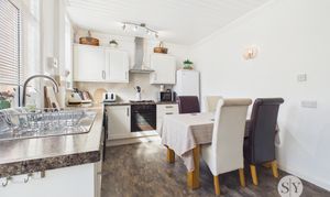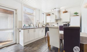 WE ARE DELIGHTED TO PRESENT THIS GORGEOUS THREE-BEDROOM END-OF-TERRACE HOUSE THAT OFFERS THE PERFECT BLEND OF MODERN LUXURY AND CHARMING CHARACTER! This thoughtfully designed home features a spacious and inviting reception room, highlighted by a stylish fireplace with a wooden surround and abundant natural light from the large window. The open plan kitchen and dining area is truly the heart of the home, boasting sleek modern cabinetry, integrated appliances, attractive tiling and a dining and seating space ideal for family meals and entertaining guests. Leading from the kitchen is a rear sun room with views over the garden and a perfect spot to relax. To the first floor there are three bright and airy bedrooms, two generous double and a cosy single, all benefiting from ample natural light, neutral decor and elegant touches such as built-in storage and fitted wardrobes in the second bedroom. A spacious bathroom completes the layout featuring decorative tiling, a full bath with shower and contemporary finishes. Loft access is via a loft ladder from the landing, the loft is set up as a room perfect for storage or further development.