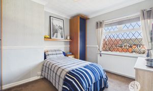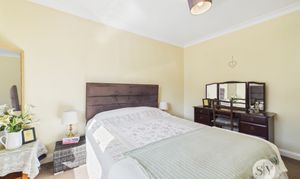 Carpet flooring, fireplace with wood surround, uPVC double glazed window and panel radiator.