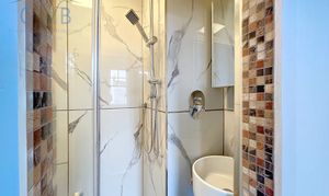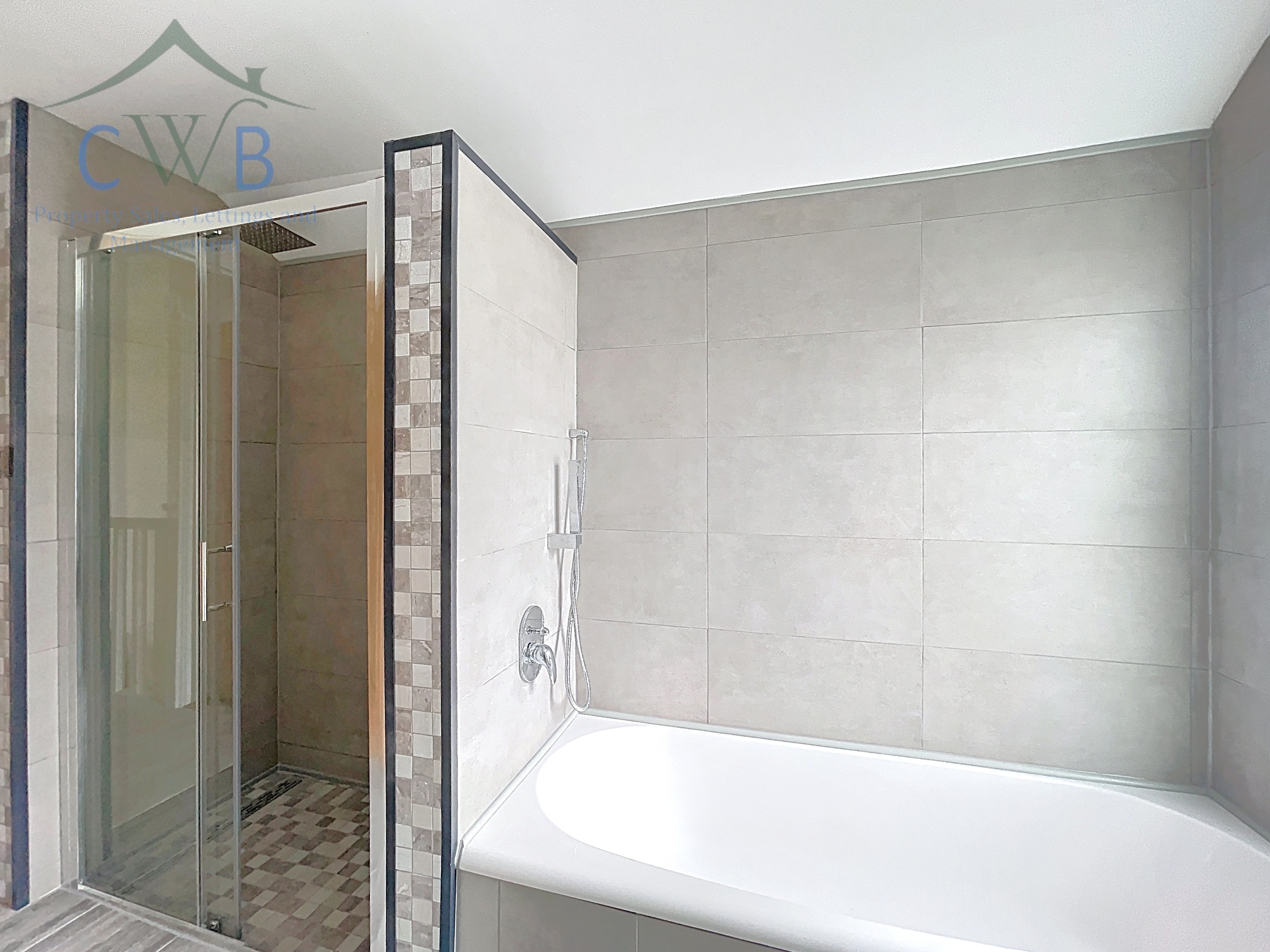 Upstairs, you’ll find two well-proportioned bedrooms, including a superb master bedroom complete with its own ensuite shower room. A separate WC provides added practicality, while the newly fitted bathroom is a standout feature, boasting a sleek shower and indulgent sunken bath—perfect for relaxing at the end of the day. A huge loft space further enhances the home, offering excellent storage or potential for future conversion (subject to stpp).