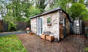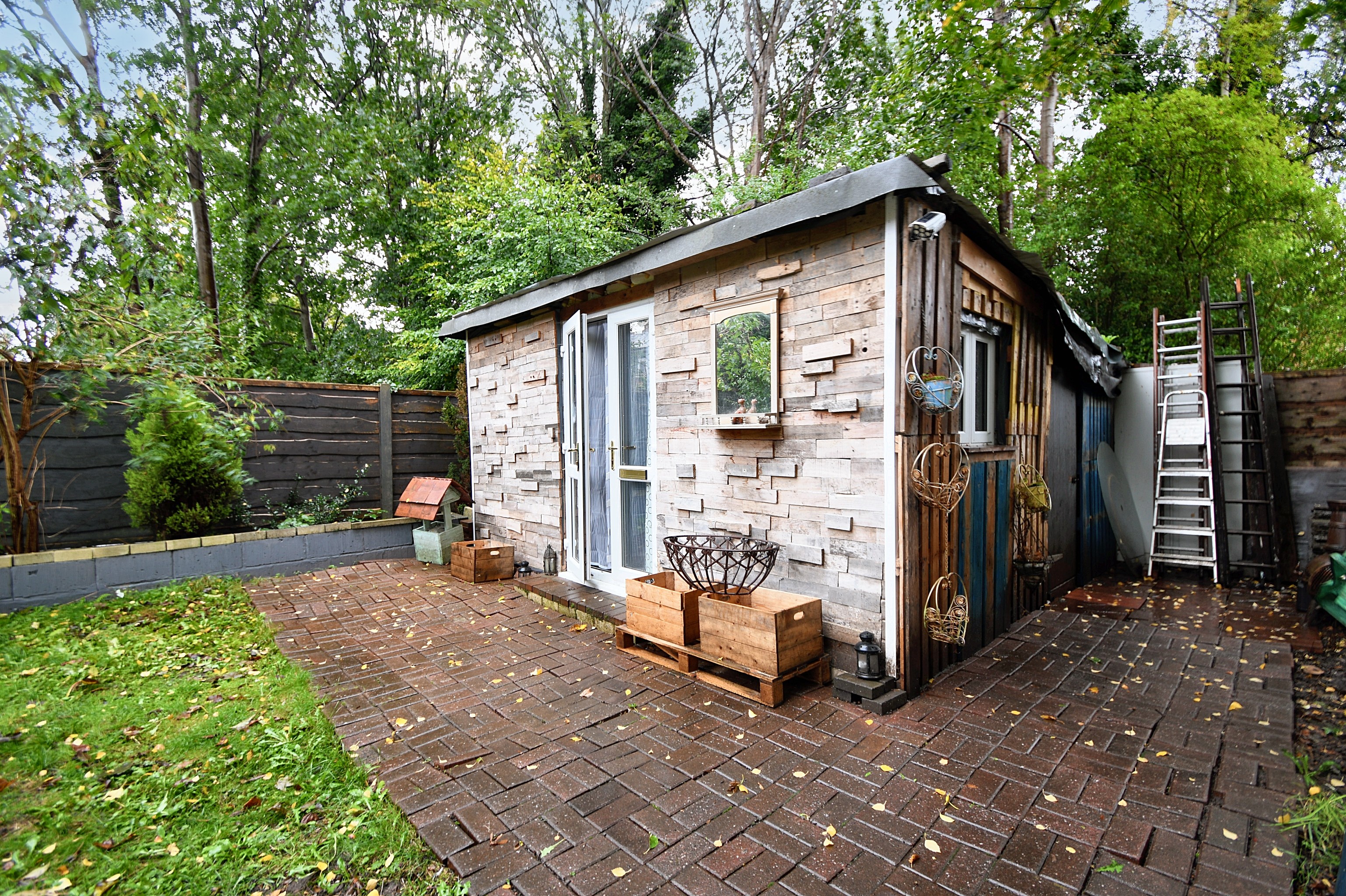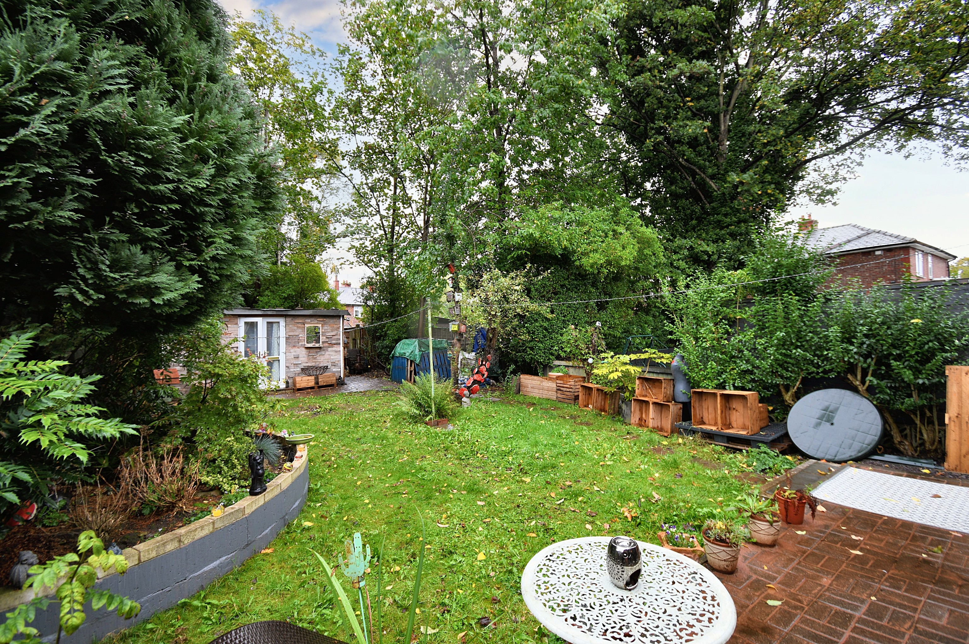 - Sizable, Sun Drenched Rear Garden along with a Garden Room and Storage Shed