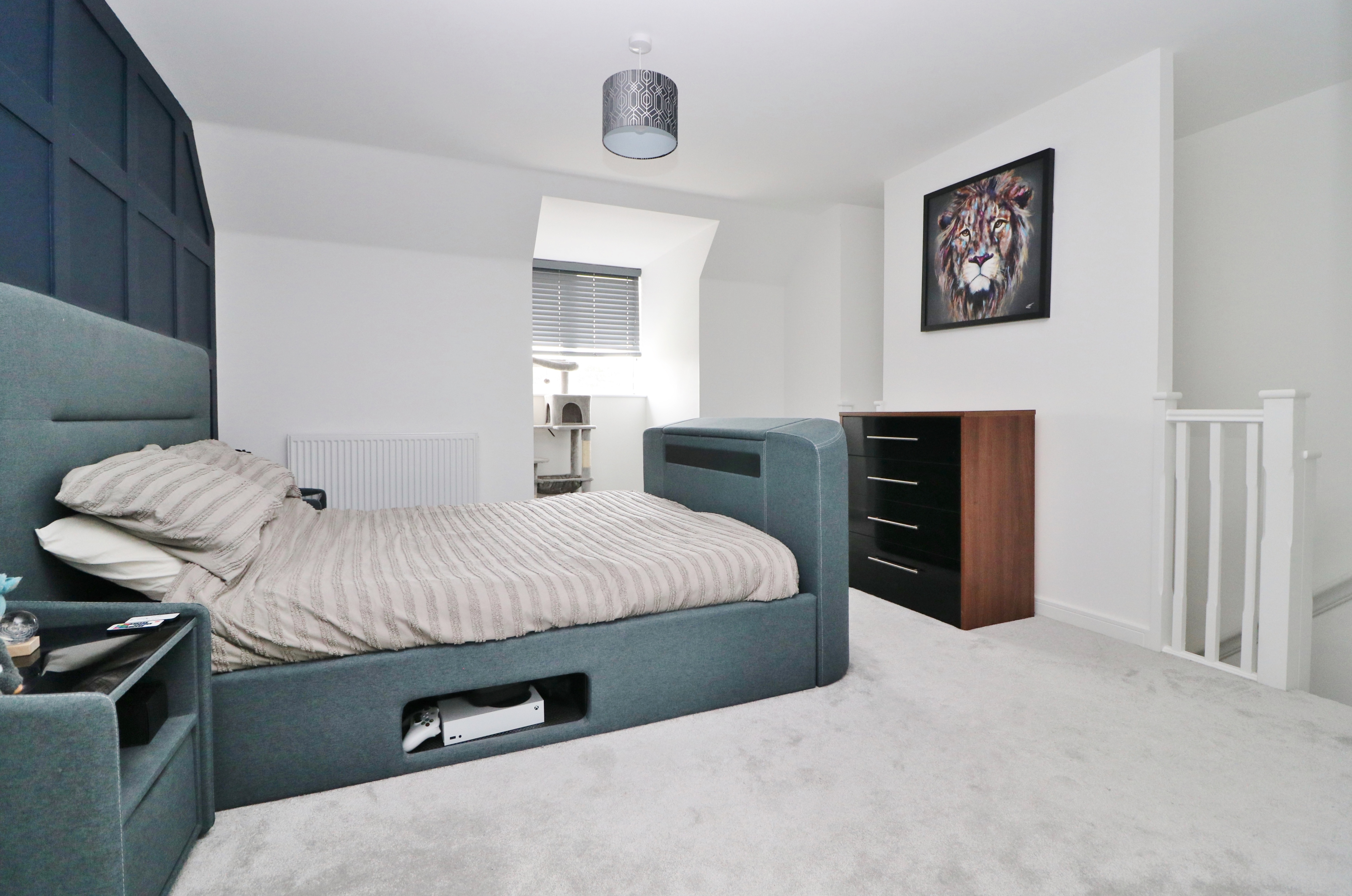 The impressive master bedroom is located on the top floor and features a dressing room and en-suite shower room.