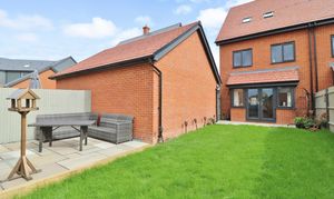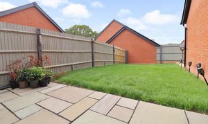 To the side there is driveway parking for two cars, leading to the single garage. Gated side access leads through to the attractive, landscaped rear garden which has a paved patio area, leaving the rest of the garden mainly laid to lawn and enjoying a further paved seating area to one corner.