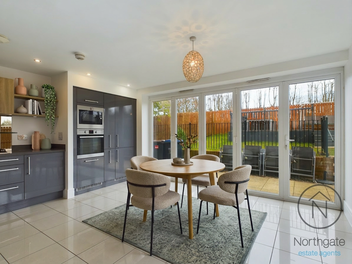 Arranged over two spacious floors, the immaculate accommodation begins with a welcoming entrance hall leading to a convenient ground floor cloakroom/WC and a generous lounge, perfect for family relaxation. To the rear of the property, a stunning modern kitchen/diner provides an impressive open-plan space, complete with integrated appliances and bi-folding doors that open seamlessly onto the rear garden, creating an ideal setting for both everyday living and entertaining.