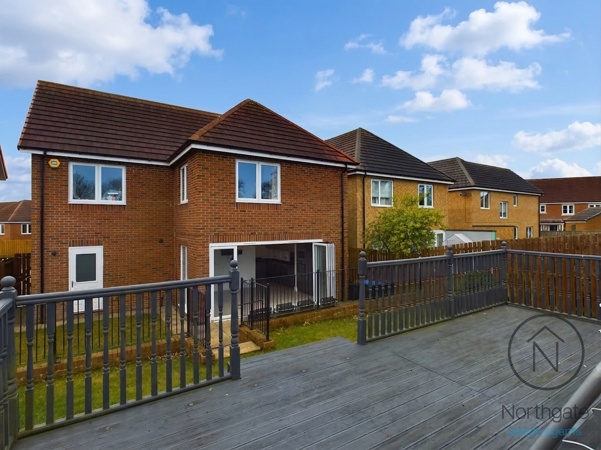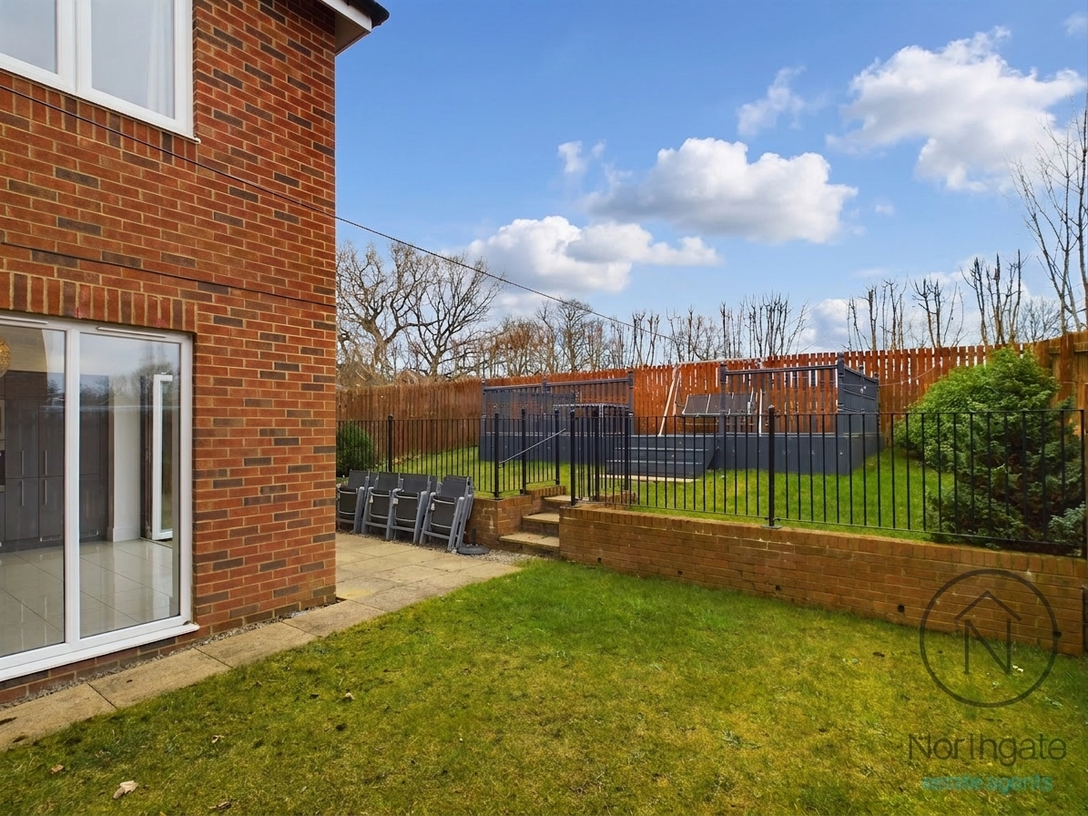 Externally, the property continues to impress with an enclosed rear garden that backs onto open fields, offering a pleasant and private outlook. The garden features a lawn, a private patio seating area, and raised decking, providing excellent outdoor entertaining space. To the front, two lengthy block-paved driveways offer ample off-street parking for several vehicles, with one leading to the integral garage.