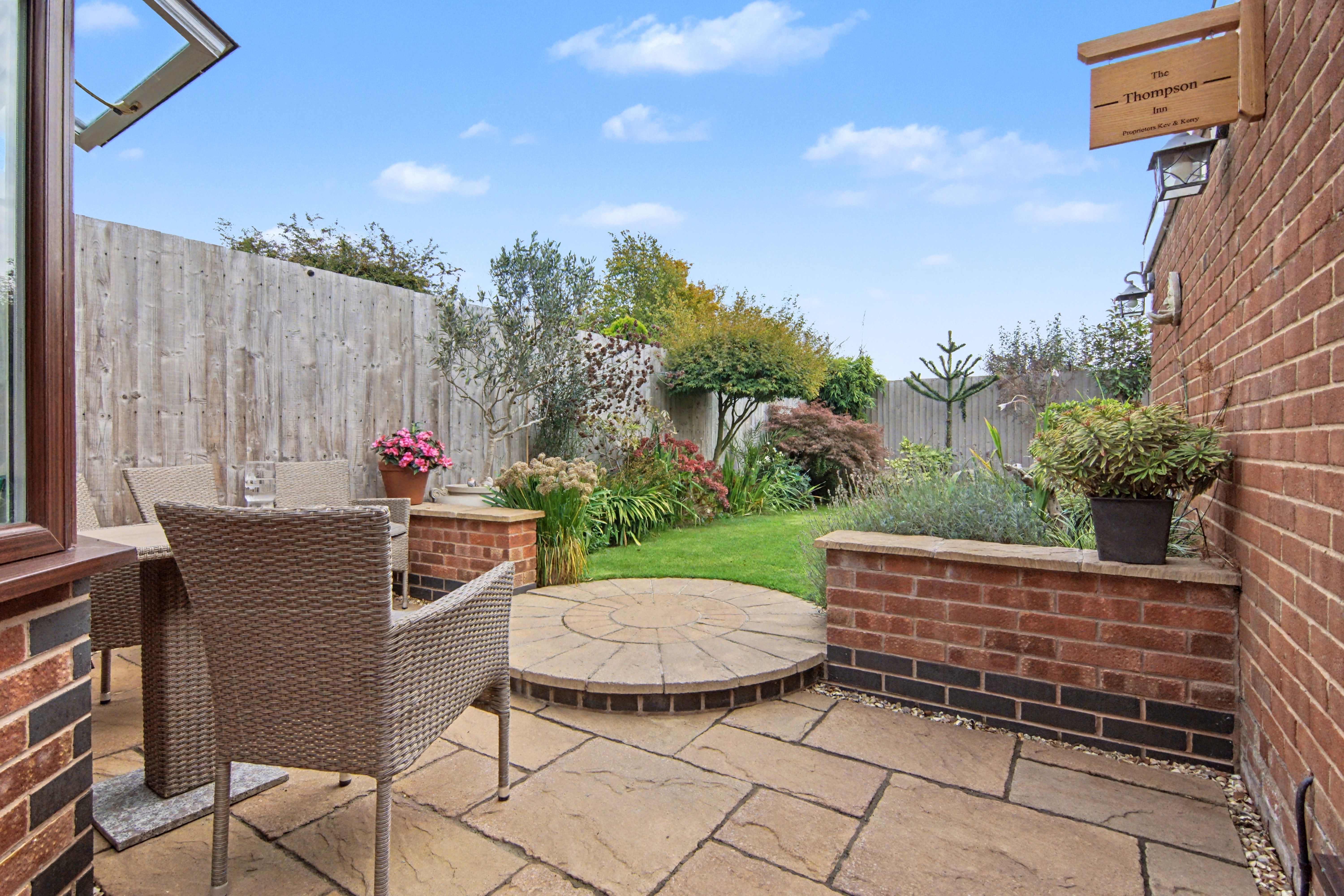 Rear: Lawn | Patio Area | Shrubs | Mature Garden