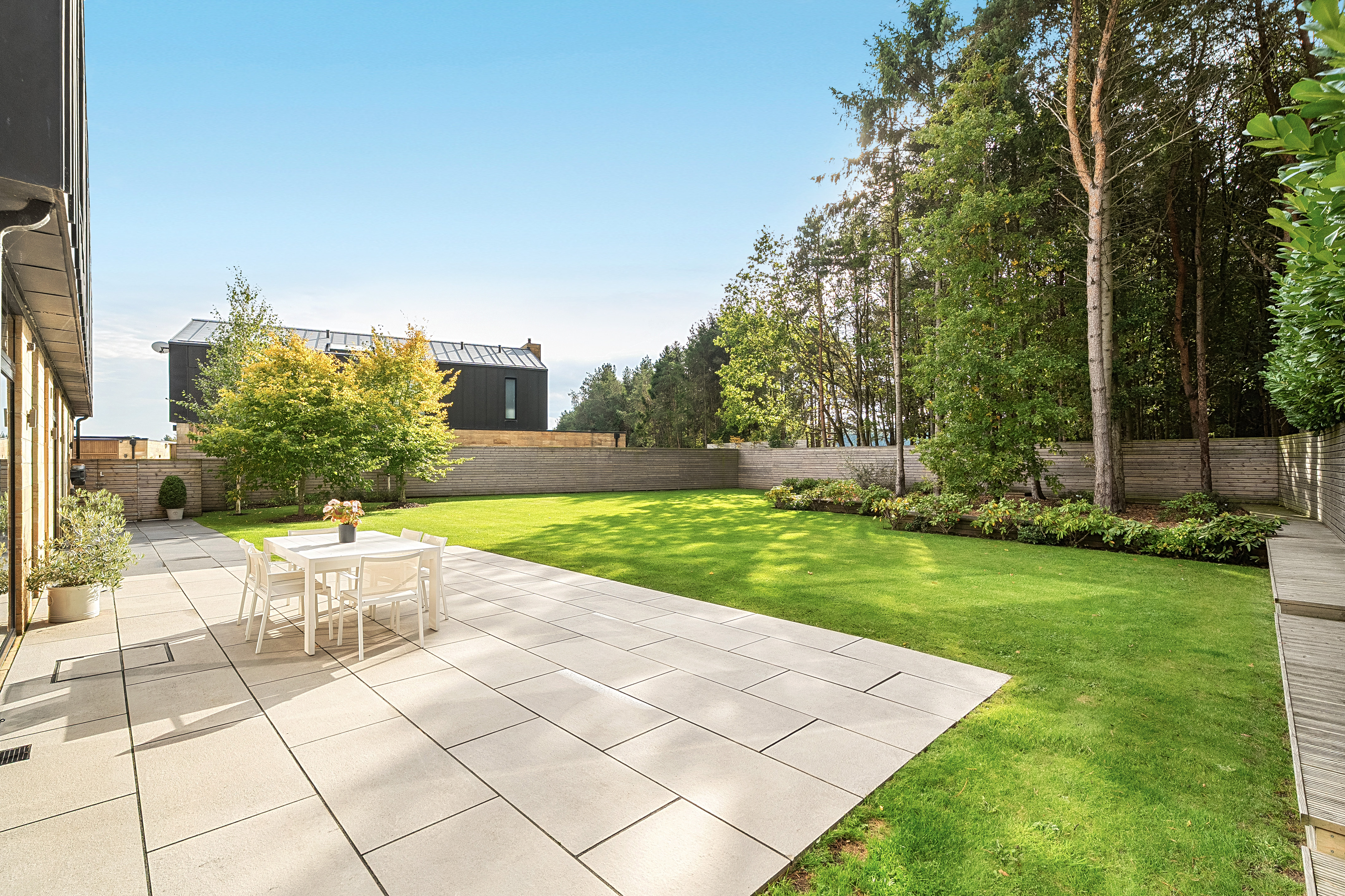 Large private lawned garden to the rear of the property with beautiful tiled terrace.