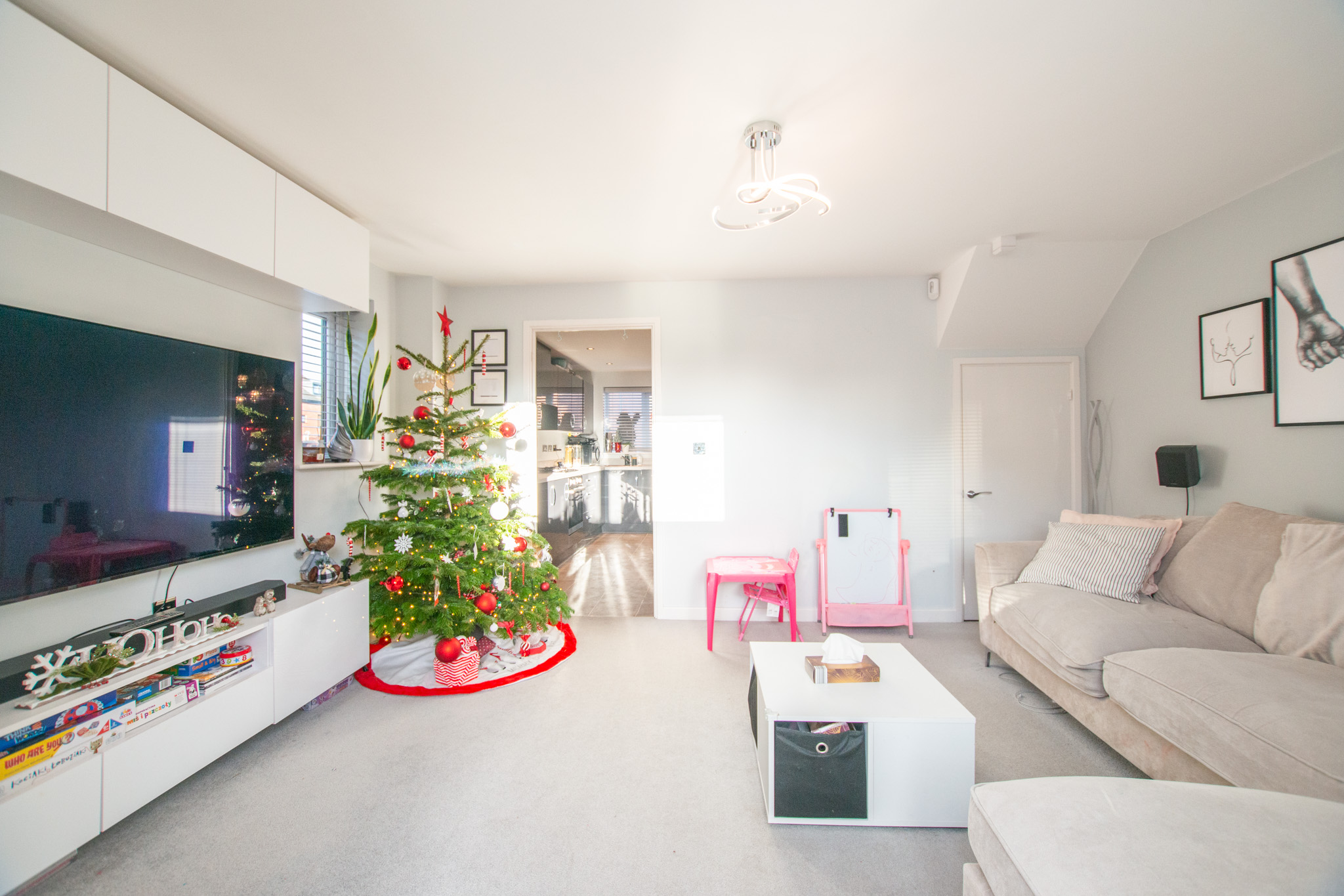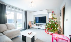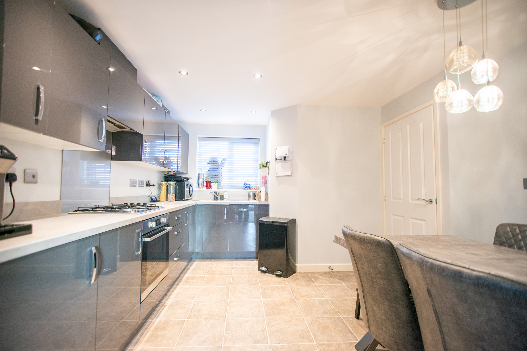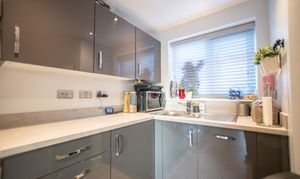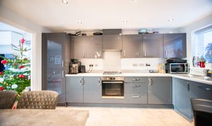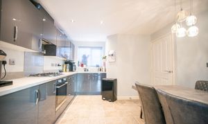 Step inside to discover a welcoming entrance hall that leads to the heart of the home - a spacious and light-filled kitchen and living room, perfect for both relaxing evenings and entertaining guests. The well-equipped kitchen is finished to a high standard, featuring sleek gloss slab-styled units, ample worktop space, and modern integrated appliances, ensuring a practical and stylish environment for every-day cooking.