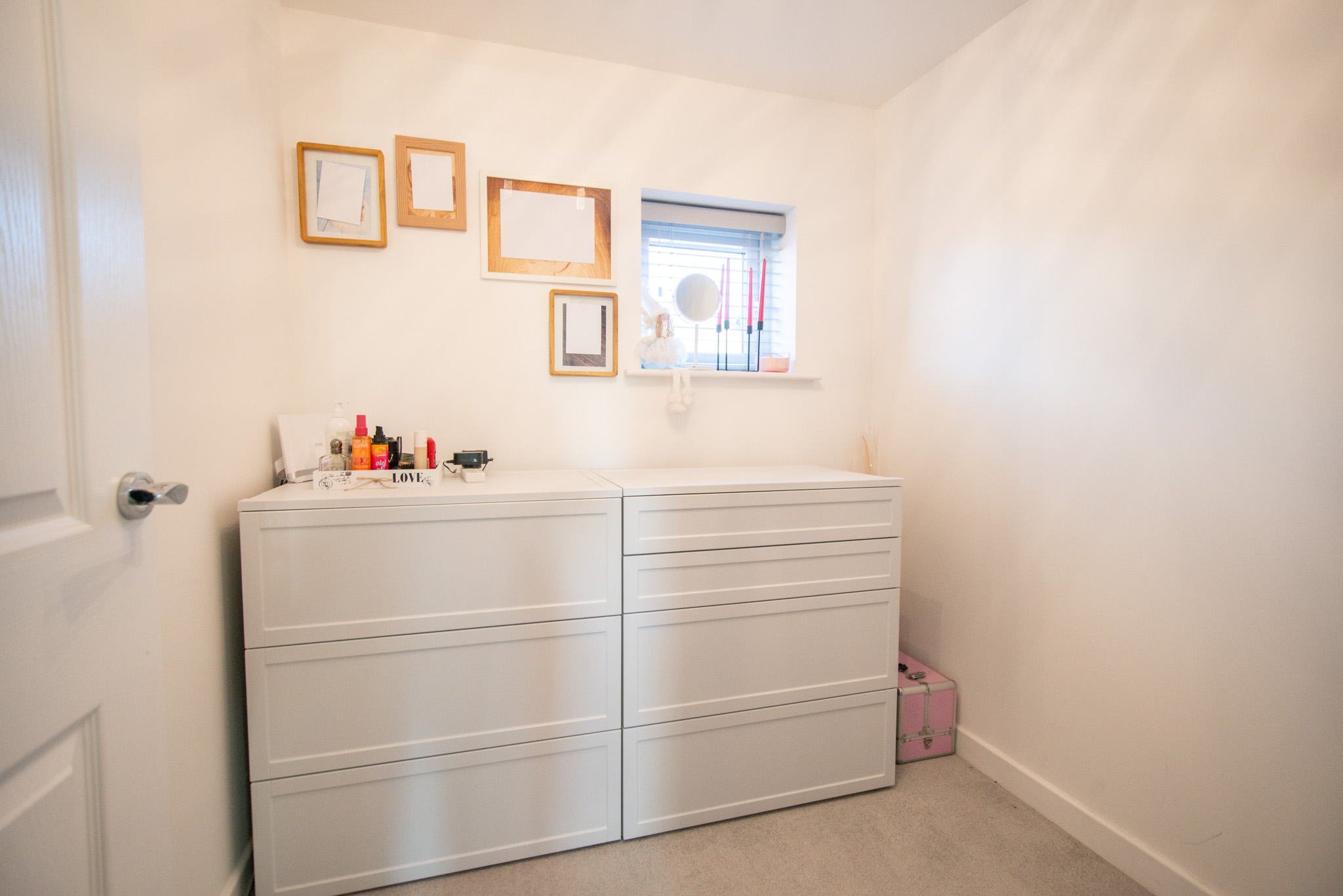 With carpet, storage cupboard, large window, and radiator.