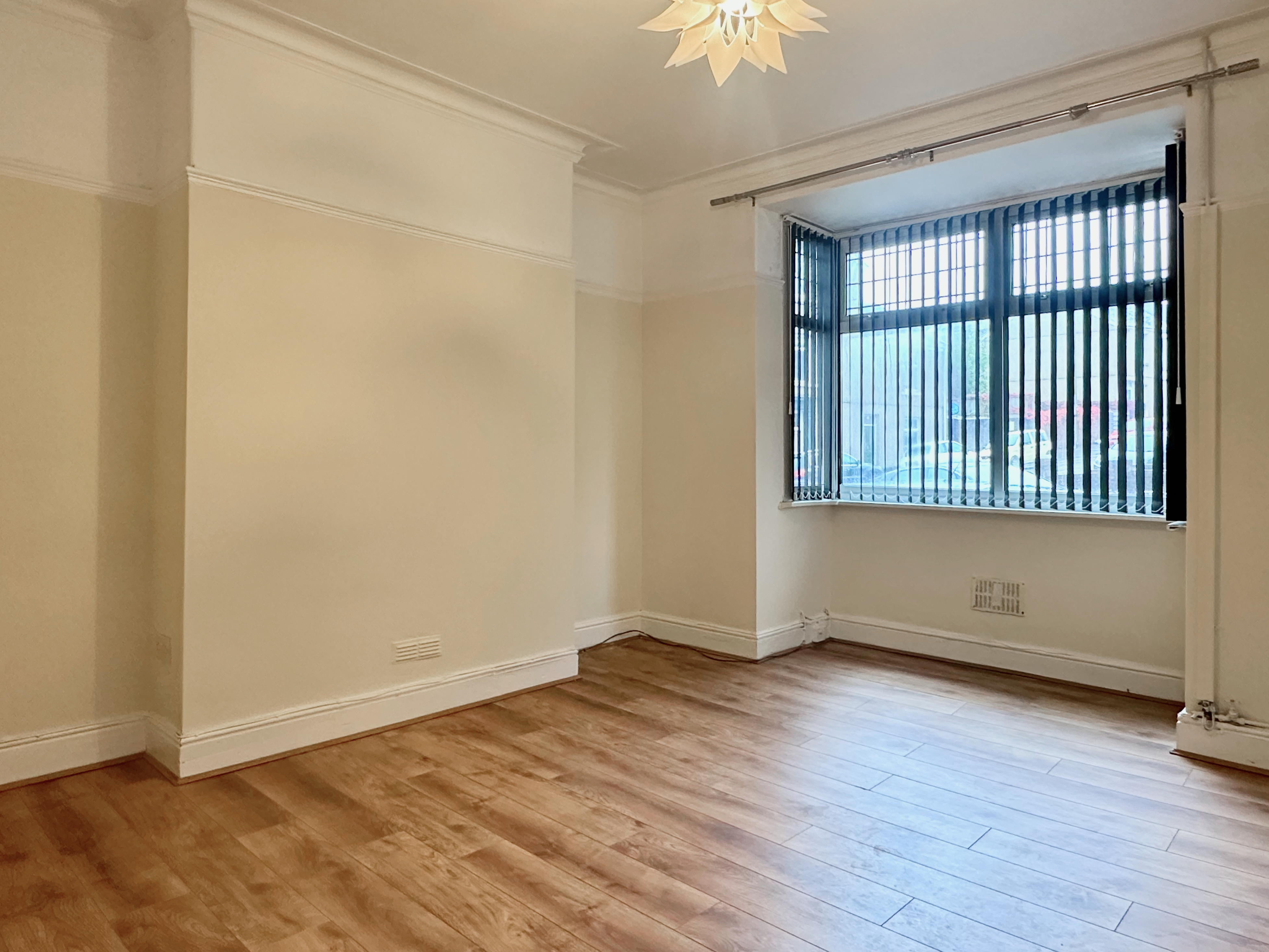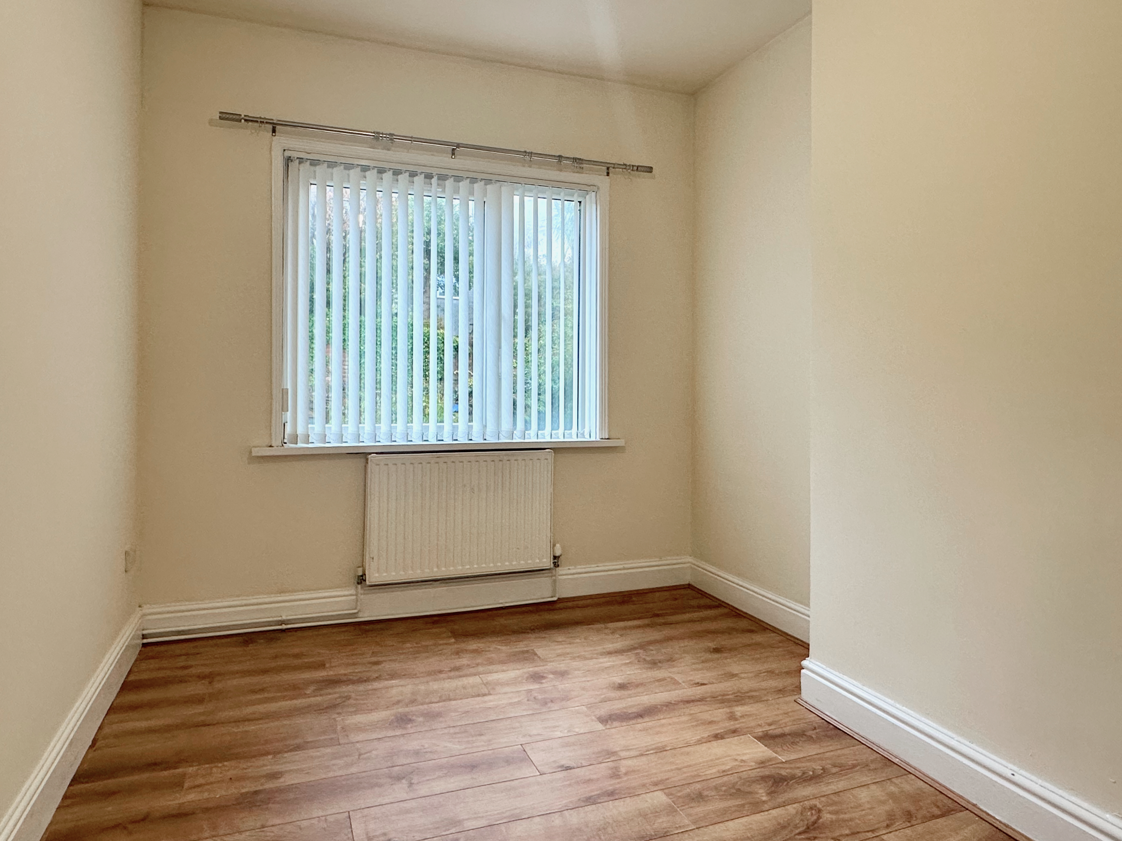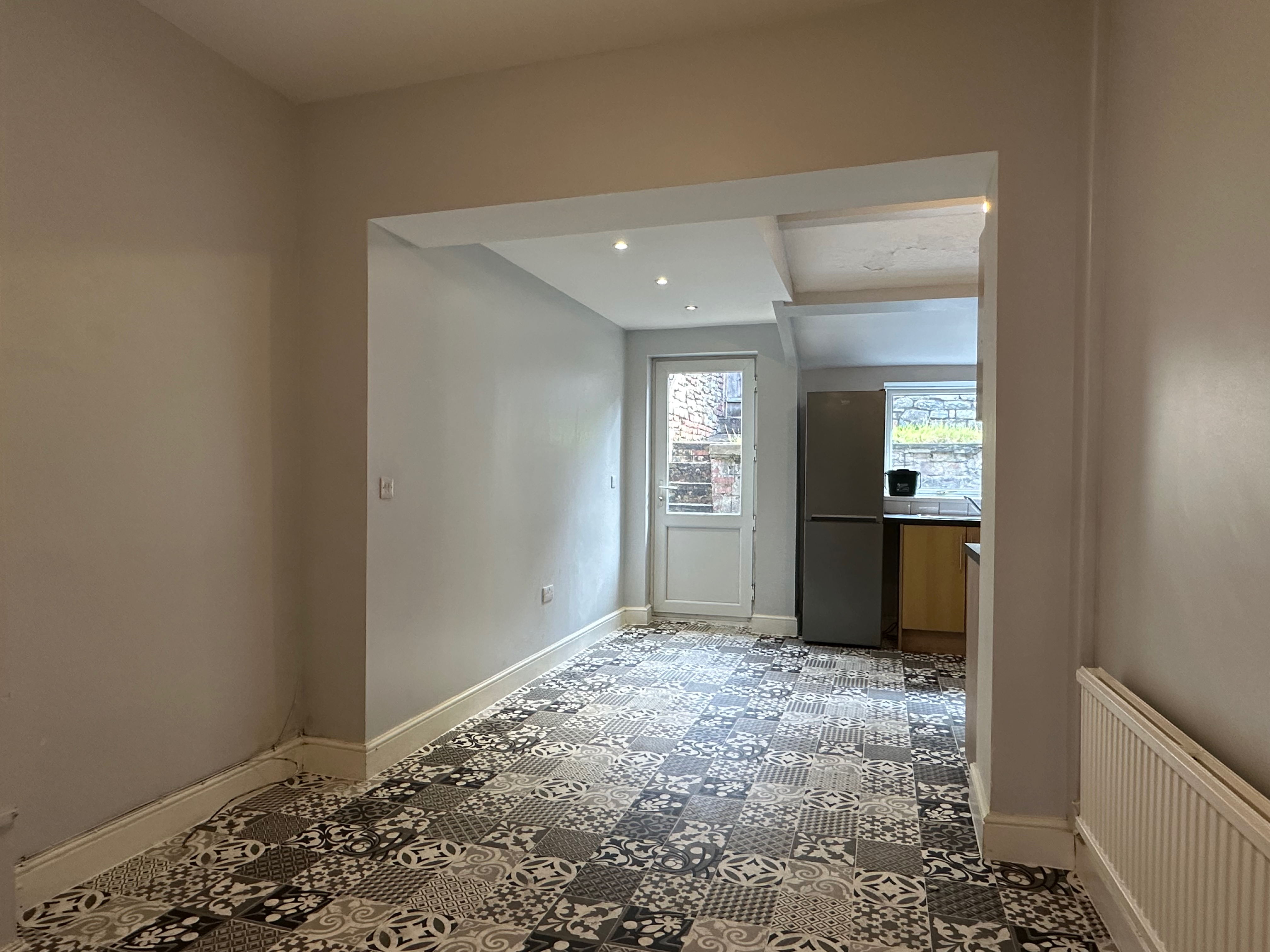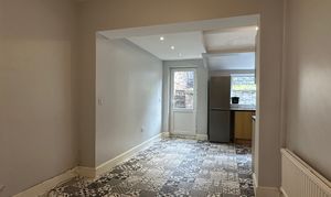 Internally, this unfurnished property comprises an entrance hallway, leading to two spacious reception rooms, and an open-plan kitchen-diner with a fitted kitchen.