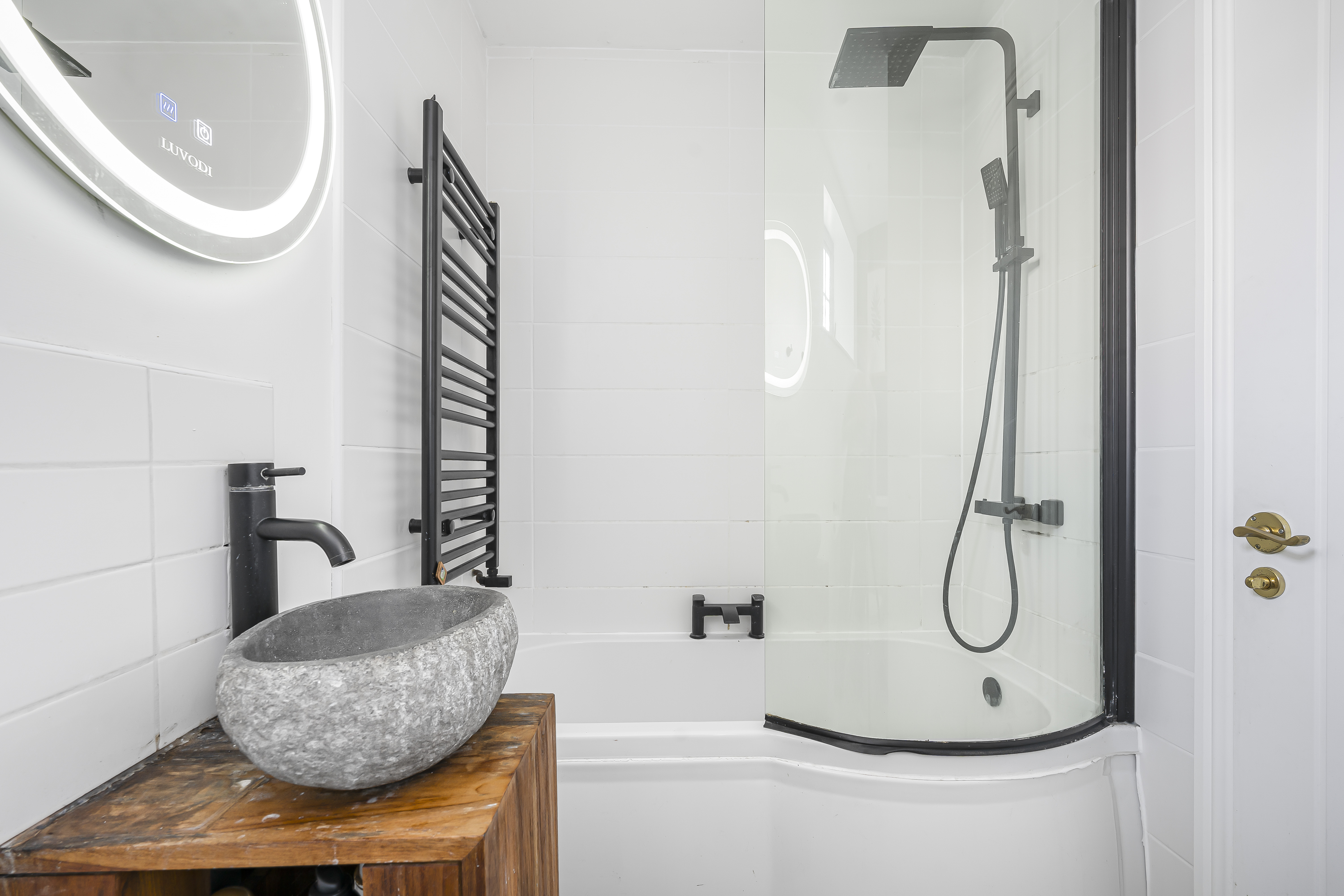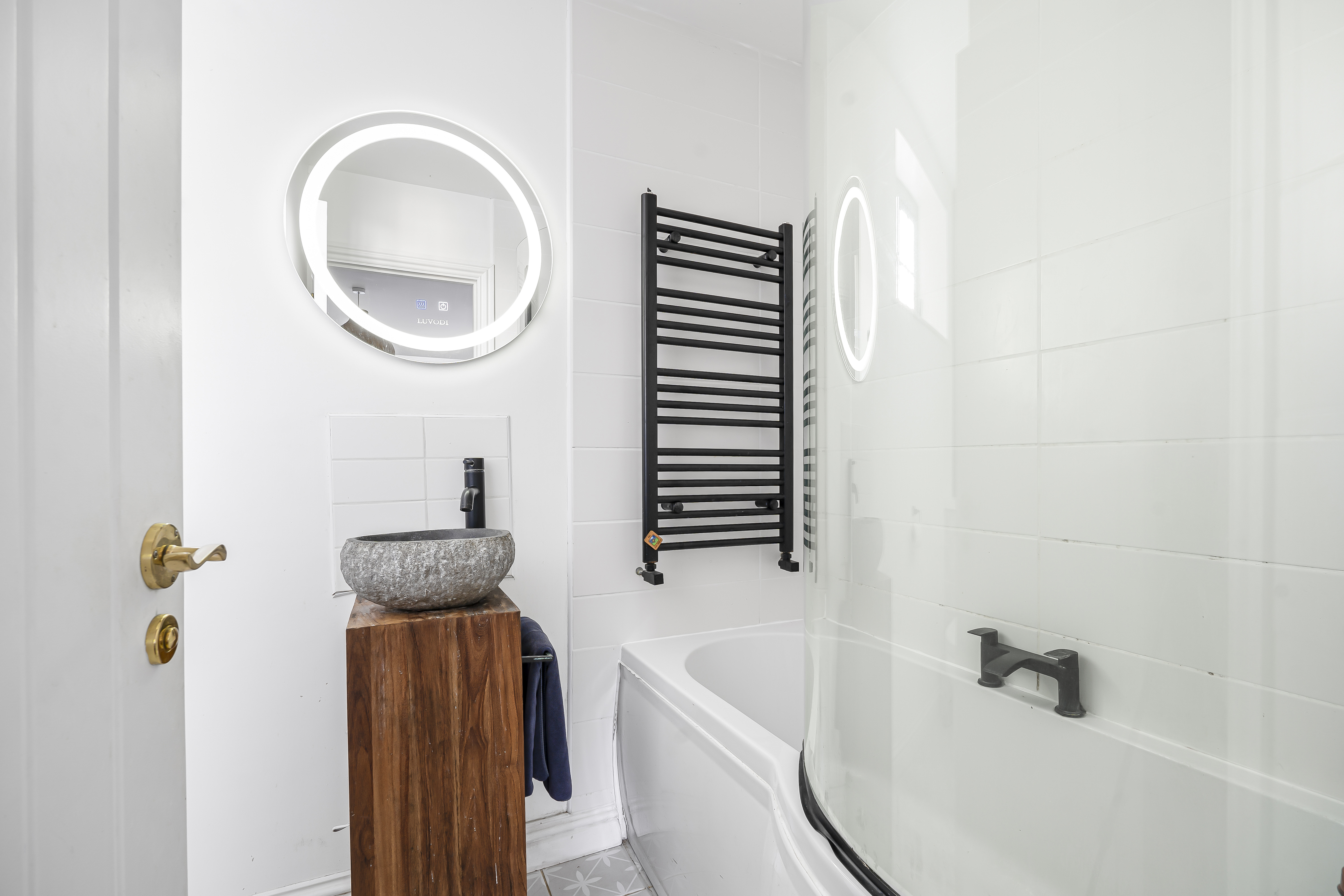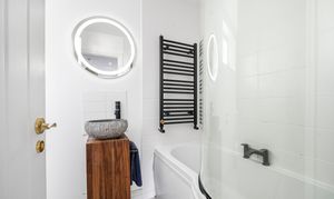 The accommodation on the ground floor consists of two double bedrooms, to include the master bedroom with stunning bespoke French doors to the front, beautiful en-suite bathroom with bath with shower over, shower screen, feature sink with vanity below, W.C and heated towel rail.