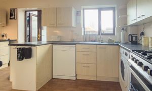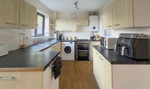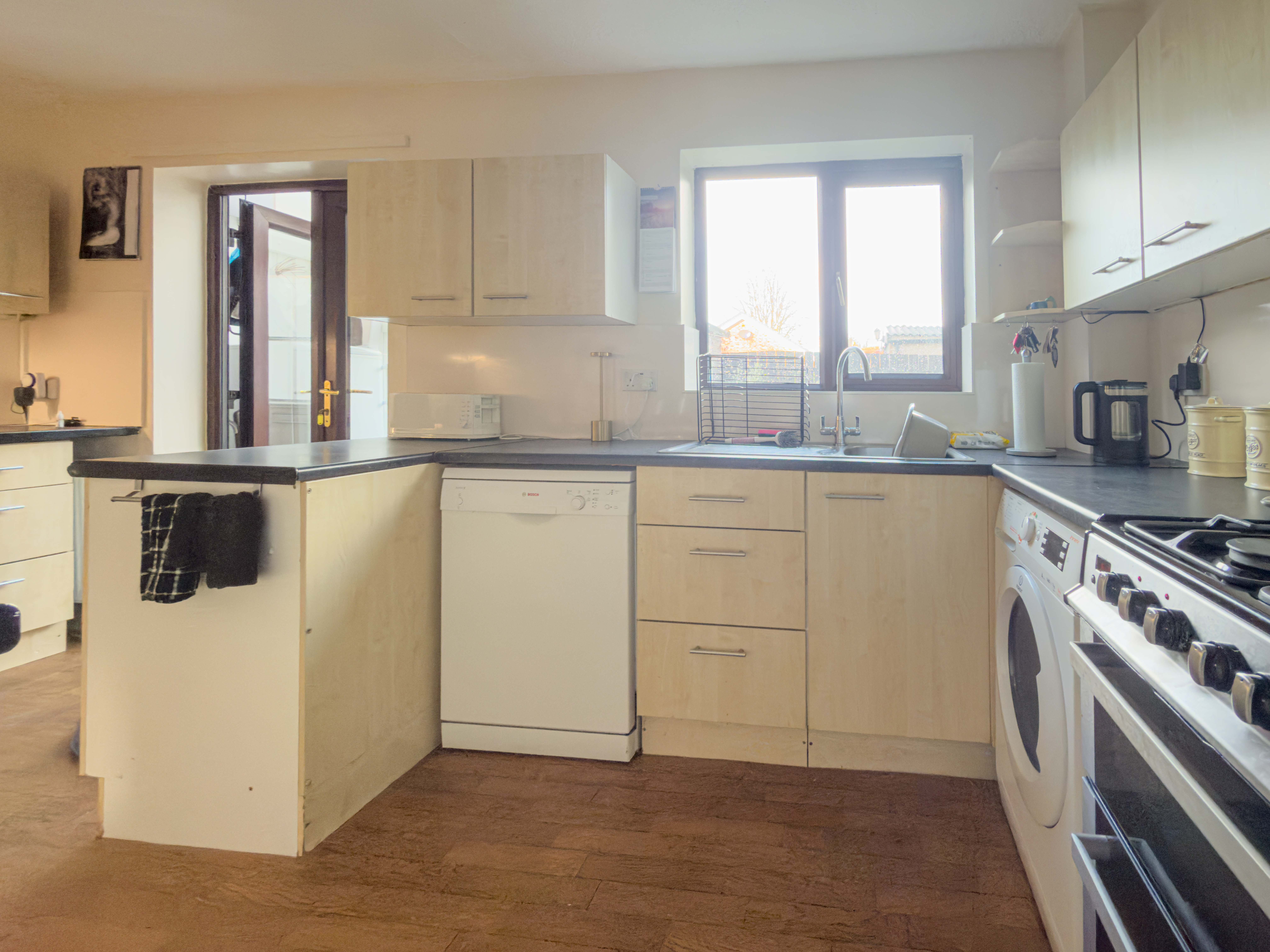 The kitchen benefits from a range of base and wall units, offering plenty of storage. A fridge freezer, dishwaher and oven with gas hob will be left in the property for the tenants use. Set off from the kitchen is a small boot room with coat hanging space, a storage cupboard and access to the side yard at the property.