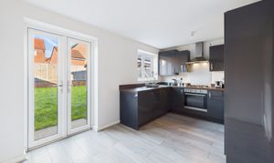- Contemporary open plan dining kitchen with integrated appliances and French doors
