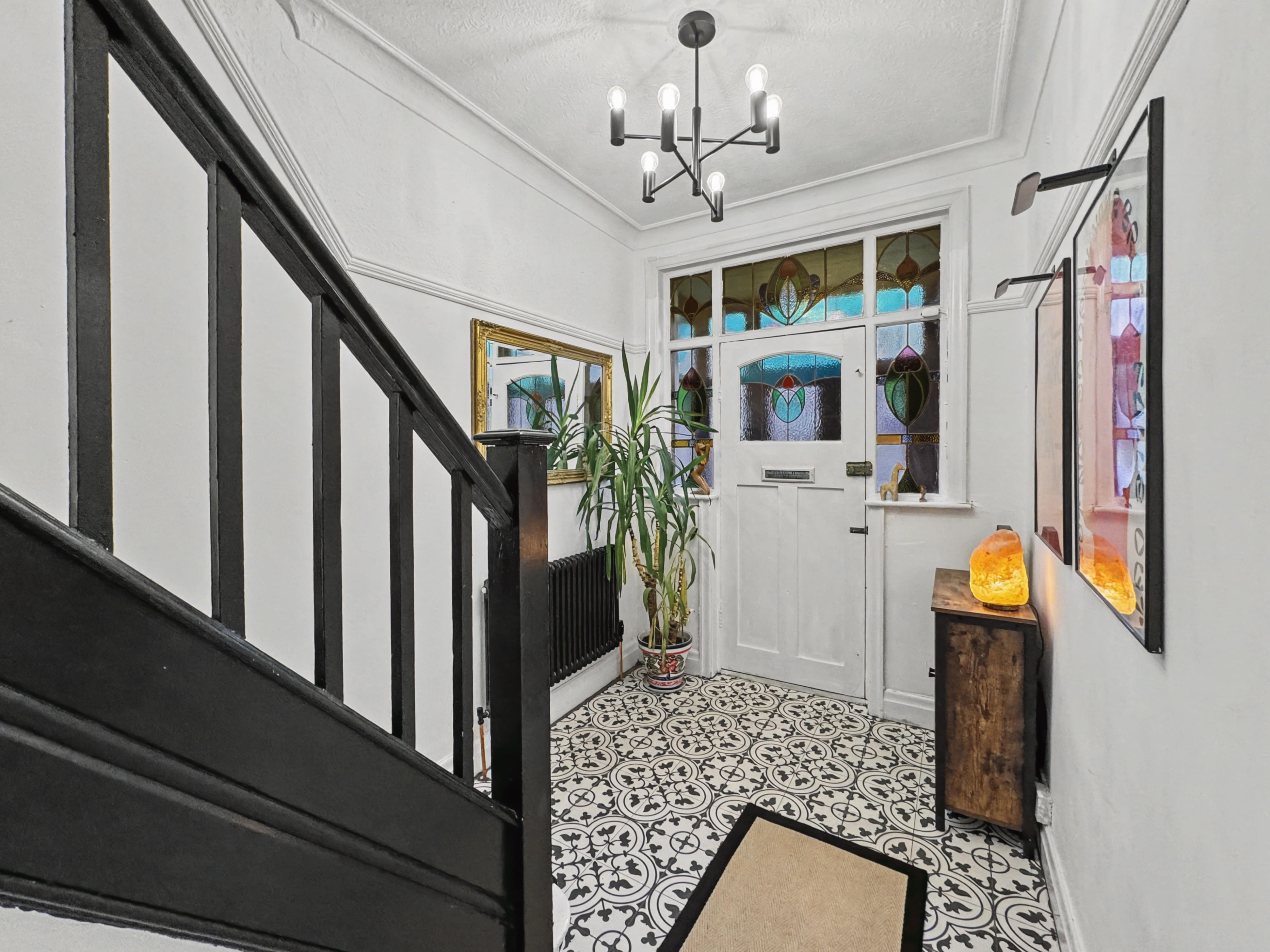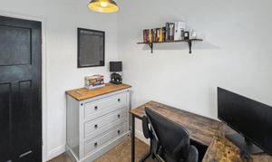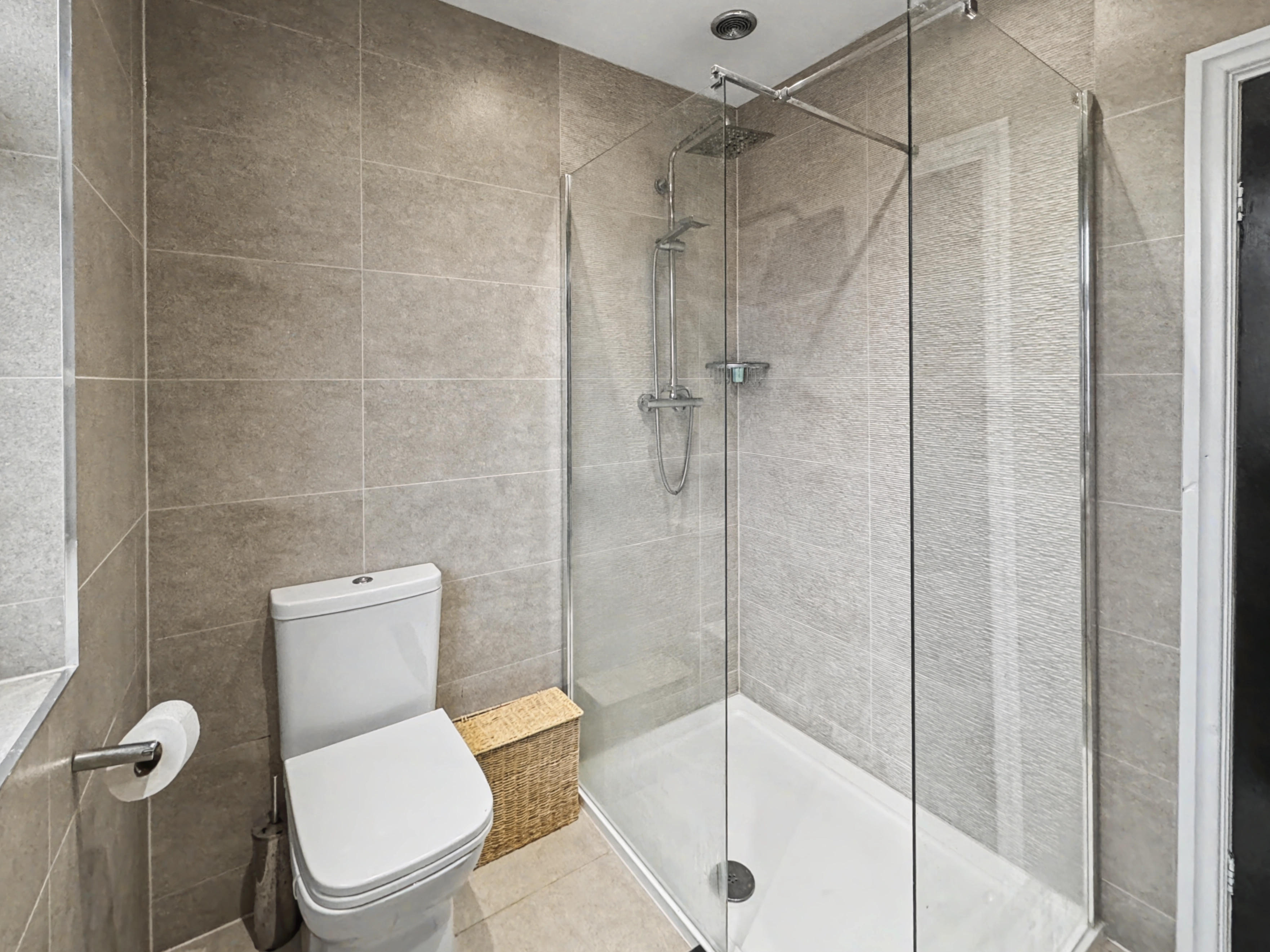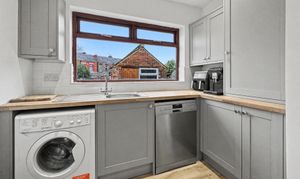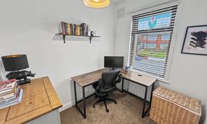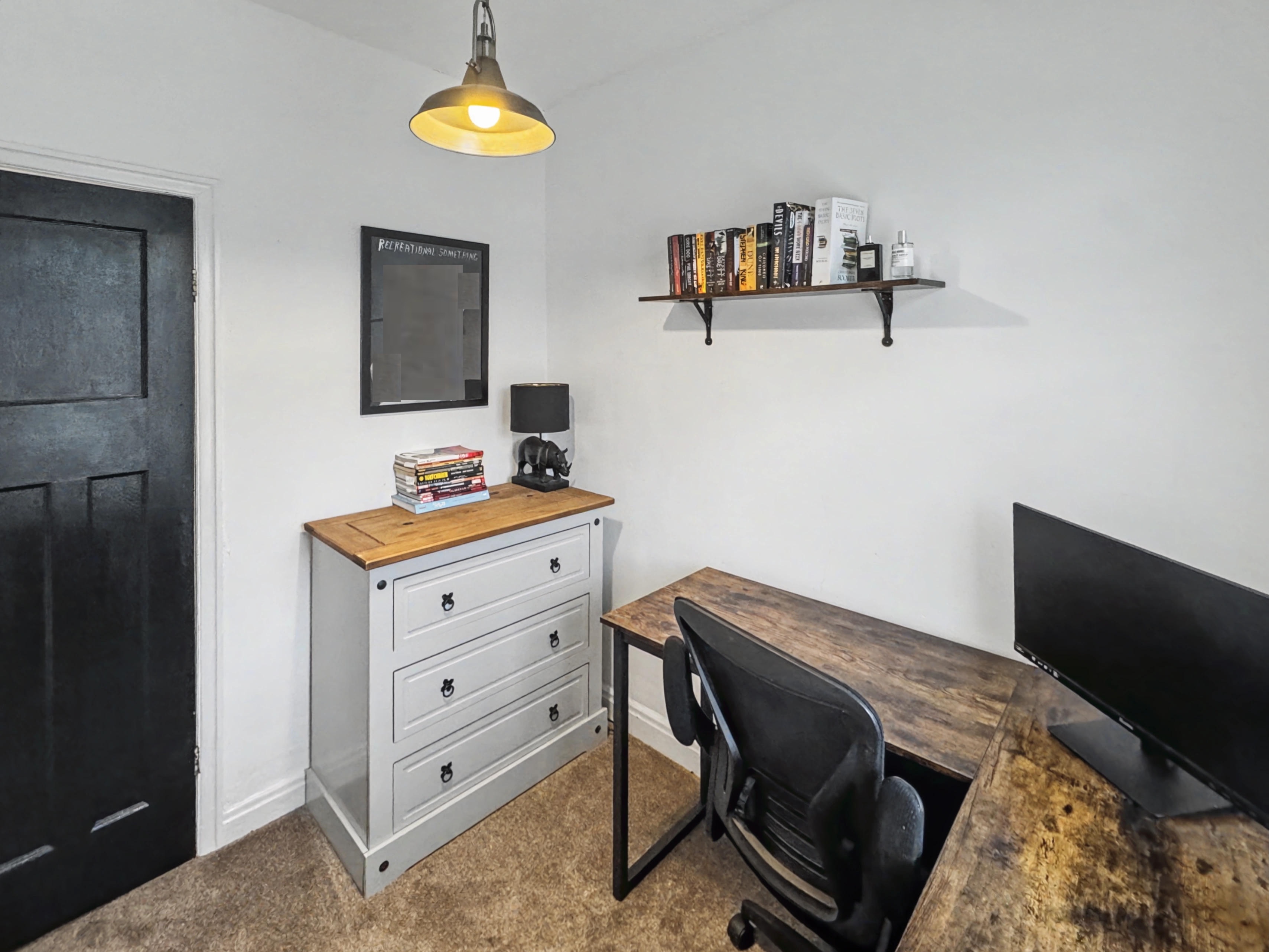 Upstairs, three well-proportioned bedrooms offer peaceful retreats, each benefitting from fresh décor with ample space for bedroom furniture. The principal bedroom is particularly impressive, with space for a king-sized bed and additional furnishings, while the remaining bedrooms provide versatility for family, guests, or home office use. The contemporary family bathroom is finished to a high standard with quality fittings, a modern three piece white suite, and tasteful tiling, ensuring both comfort and style.
