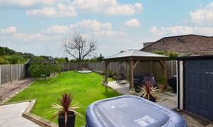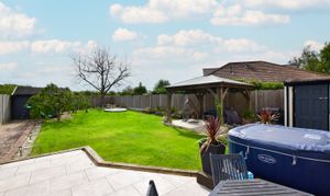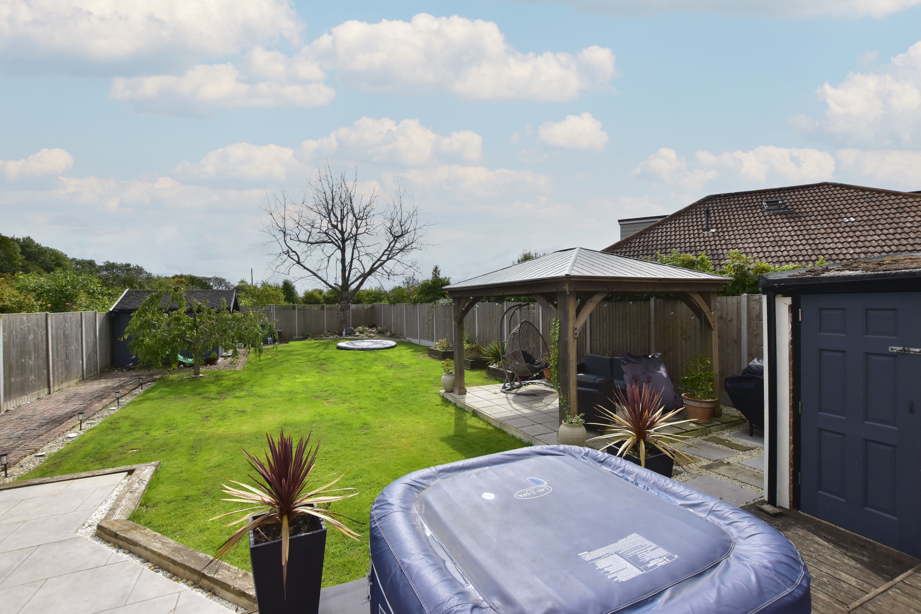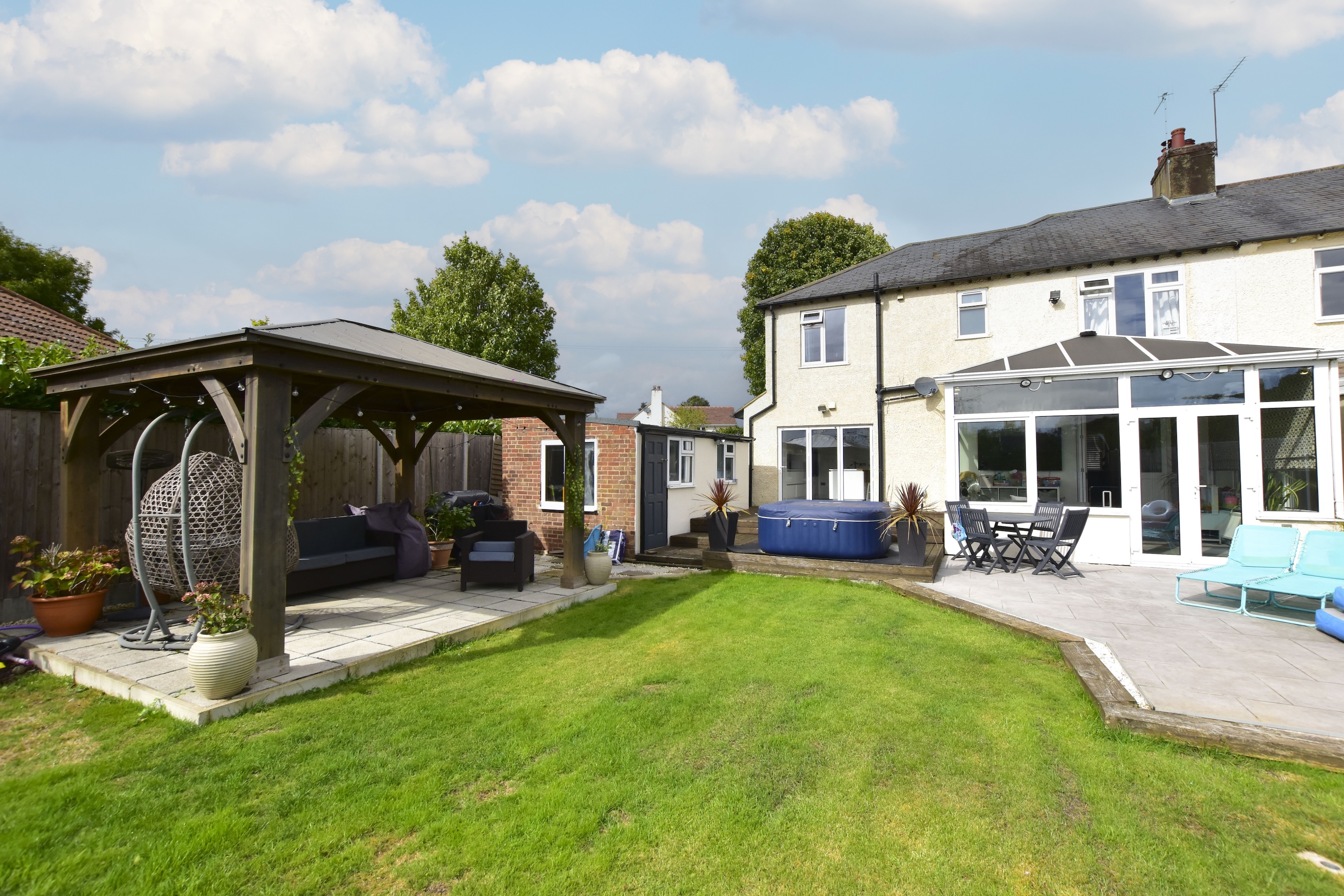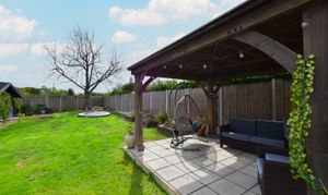 Externally, the house excels. The South-facing rear garden, which benefits from beautiful views to the rear, is a well proportioned plot that offers plenty of potential to extend in to (STPP). It has been fully landscaped by the current owner to provide a wonderful and private space that is perfect for growing families, with lots of room for children to play and for entertaining. There are various decked and patio areas, a manicured lawn and a newly installed wooden gazebo with solid roof. Additionally, there is a brick built store room. A particularly wide side access leads to the front of the house, where there is ample parking for multiple vehicles and an EV charging point.