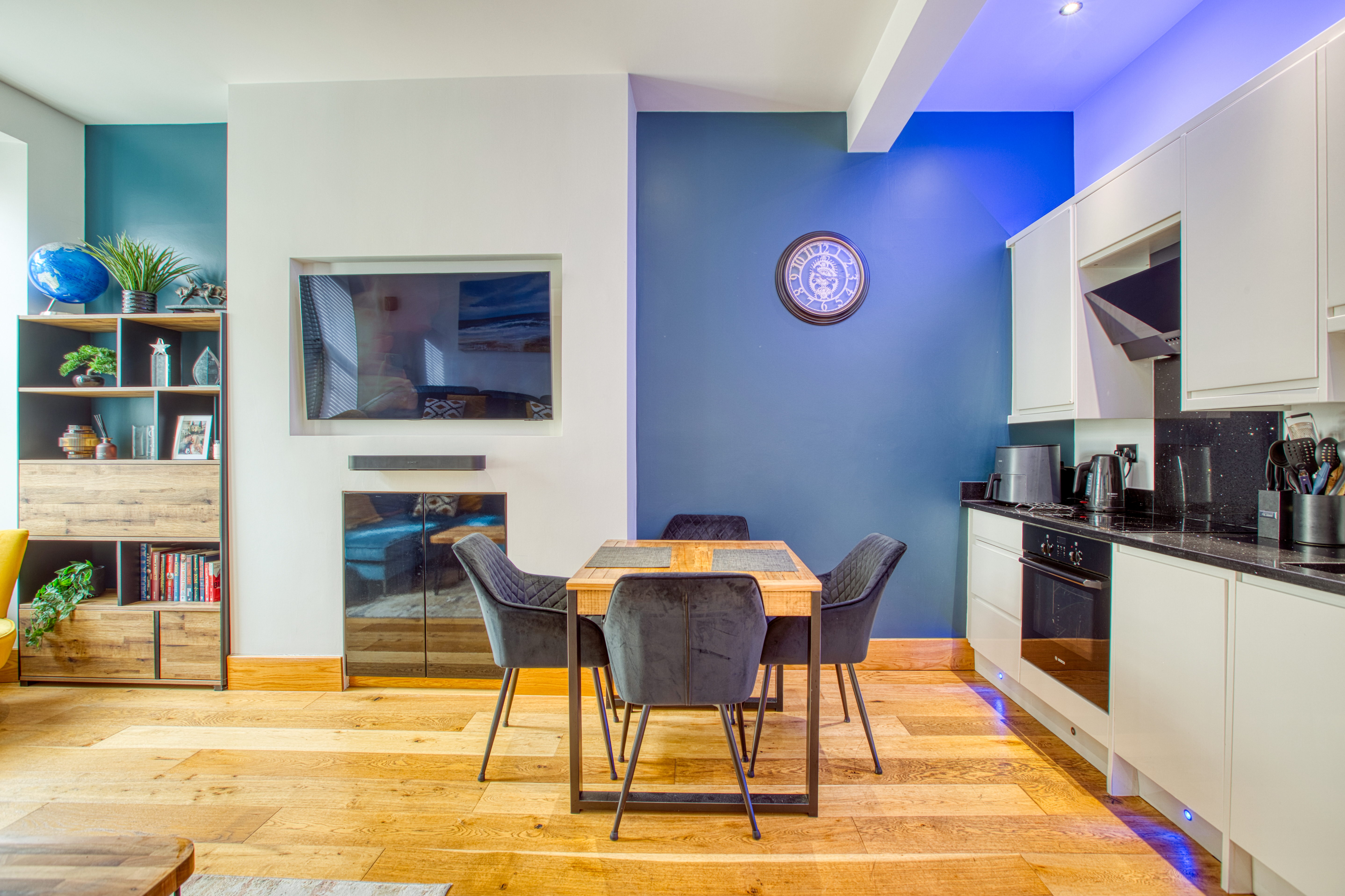 The heart of the property is the stunning open-plan lounge, dining, and kitchen area, designed for both relaxation and entertaining. The kitchen is fully fitted with modern units and integrated appliances, providing everything you need in a sleek, practical space.