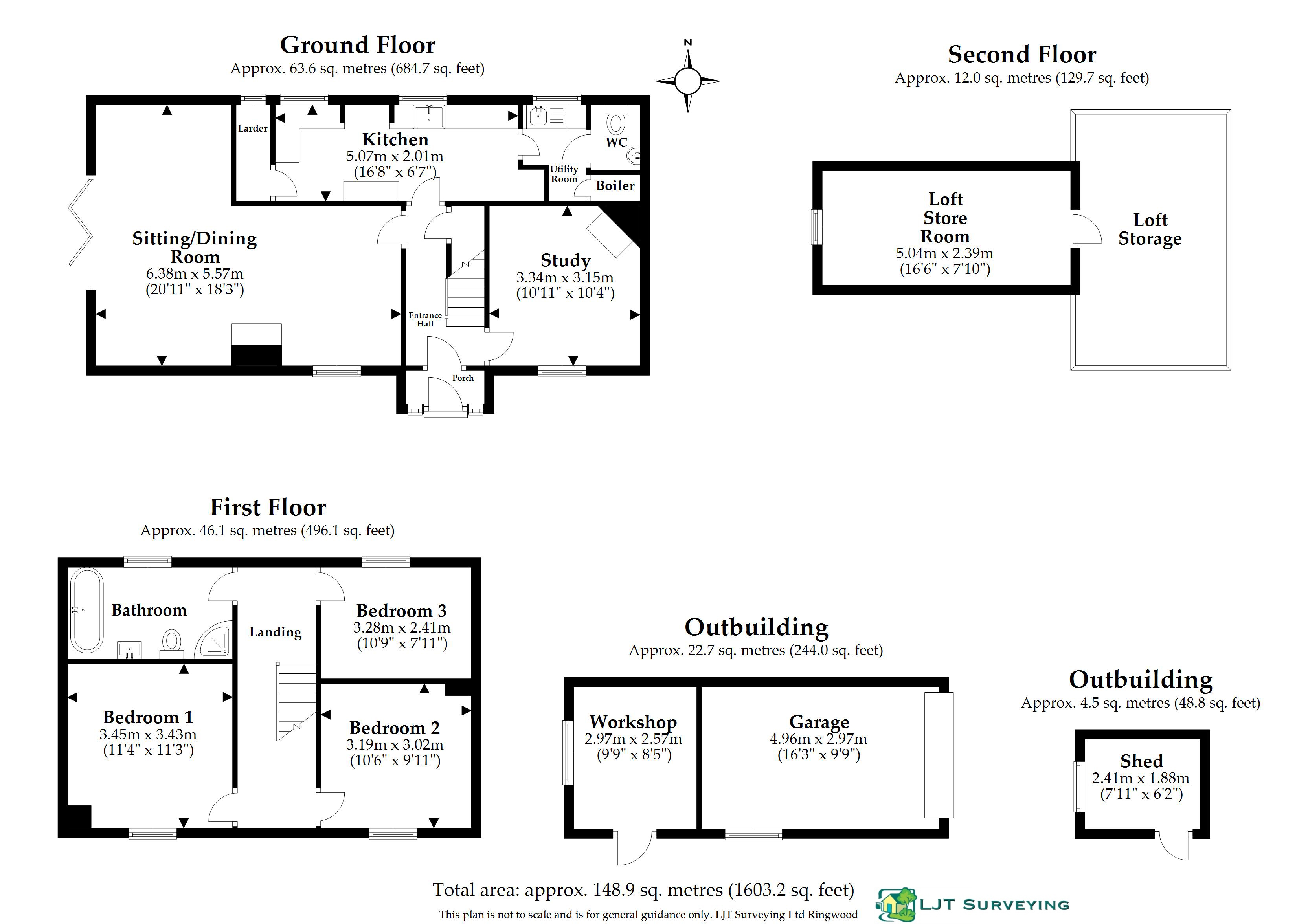 Outside, the property is accessed via a wooden five-bar gate leading to a shingle driveway with parking. Double timber doors, set into a brick wall, provide gated access to the rear garden. There is also a separate tarmac driveway to the north side of the house, leading to a single garage. From the rear garden, a pedestrian door provides access into a workshop positioned at the rear of the garage building.