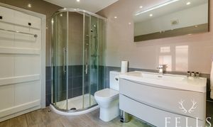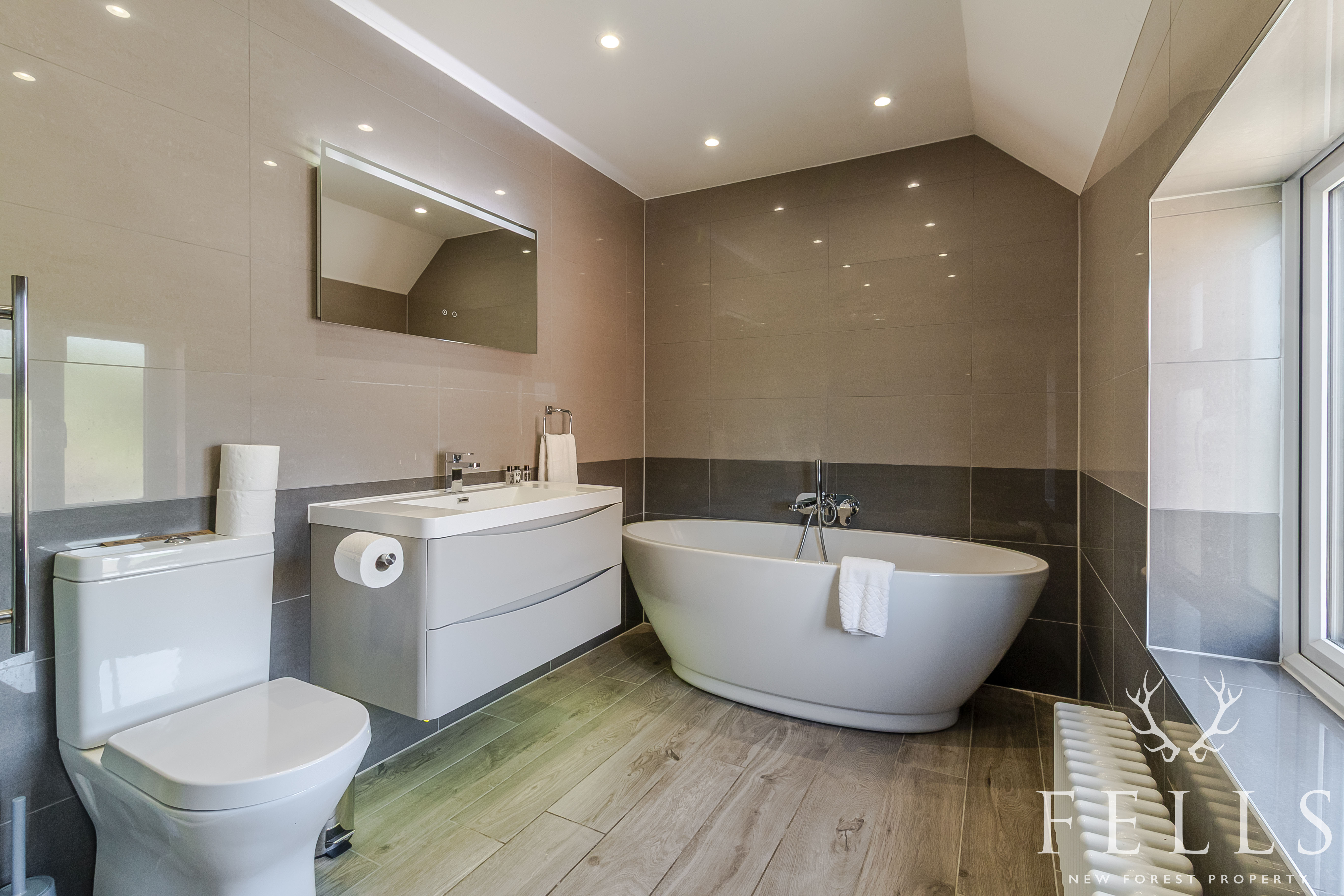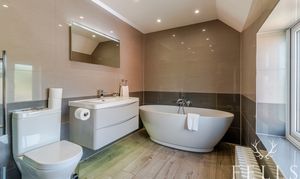 - Stylish family bathroom with freestanding bath and shower