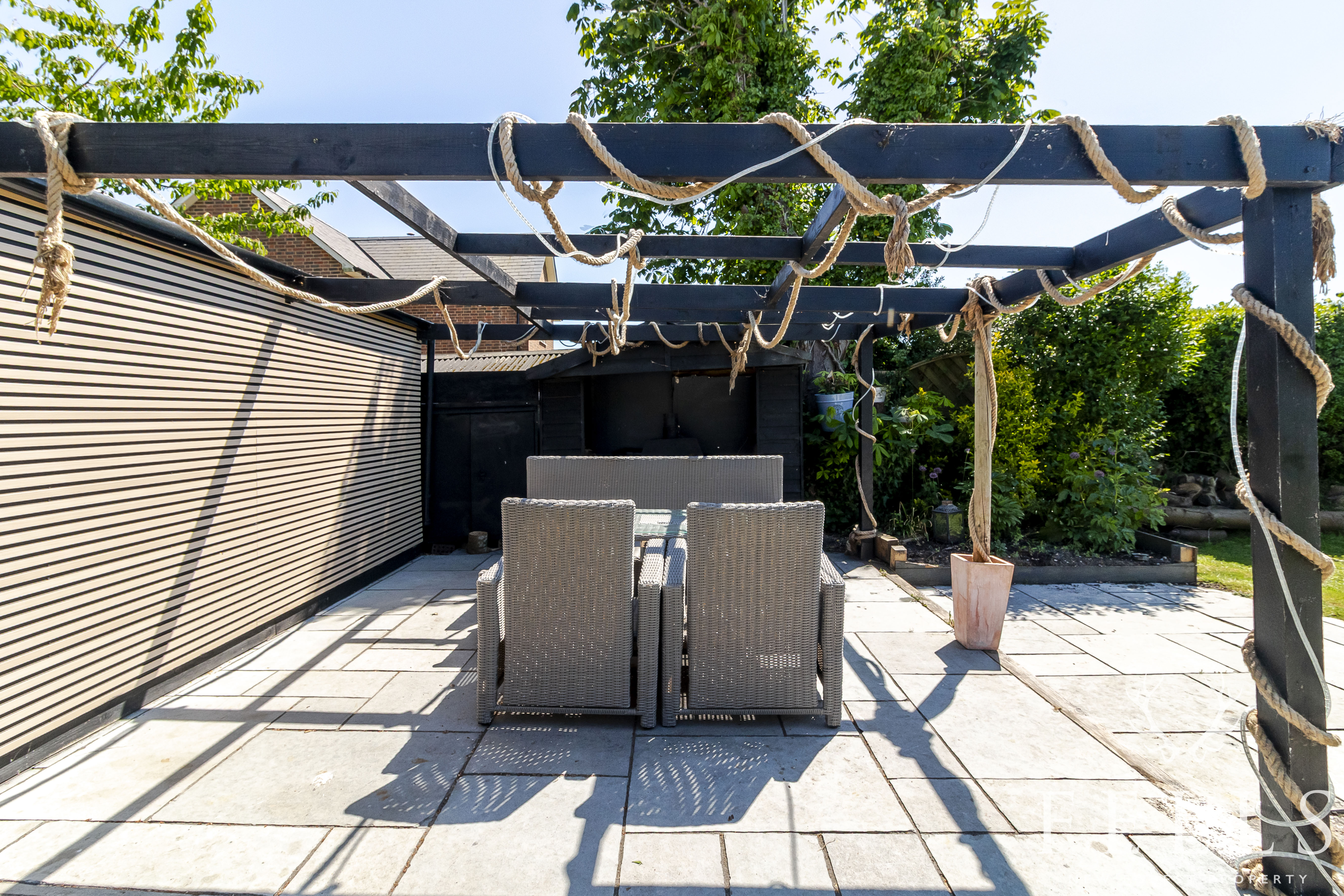 - Beautifully landscaped garden with patio, pergola and greenhouse