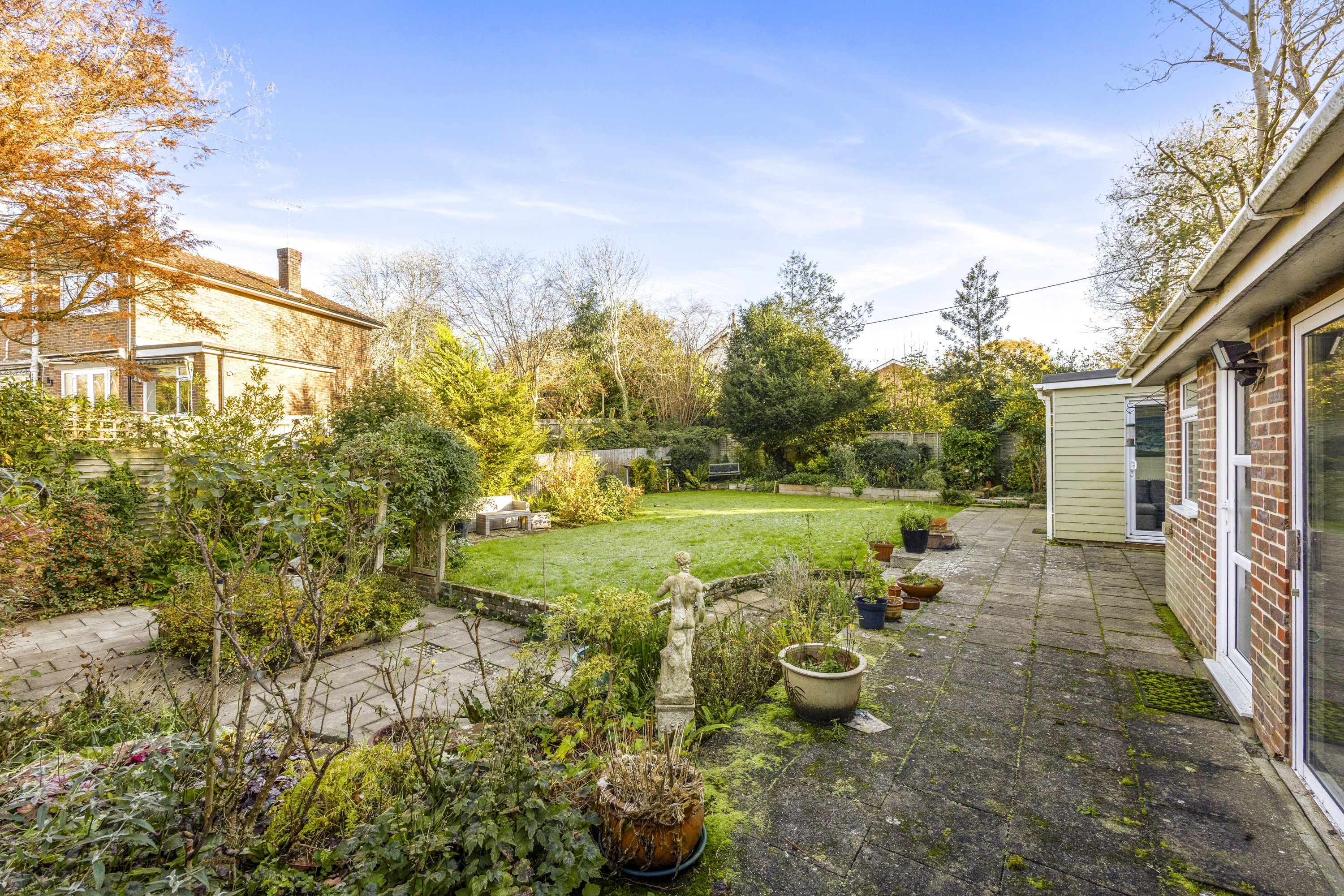 Externally, the property enjoys both front and rear gardens and sits within a tranquil, private plot. A large driveway provides ample parking for multiple vehicles. Additional benefits include a substantial side storage area, offering ideal space for garden equipment, bicycles, or seasonal items, with the added potential to convert the upper level into a home office, studio, or hobby space (subject to necessary consents).