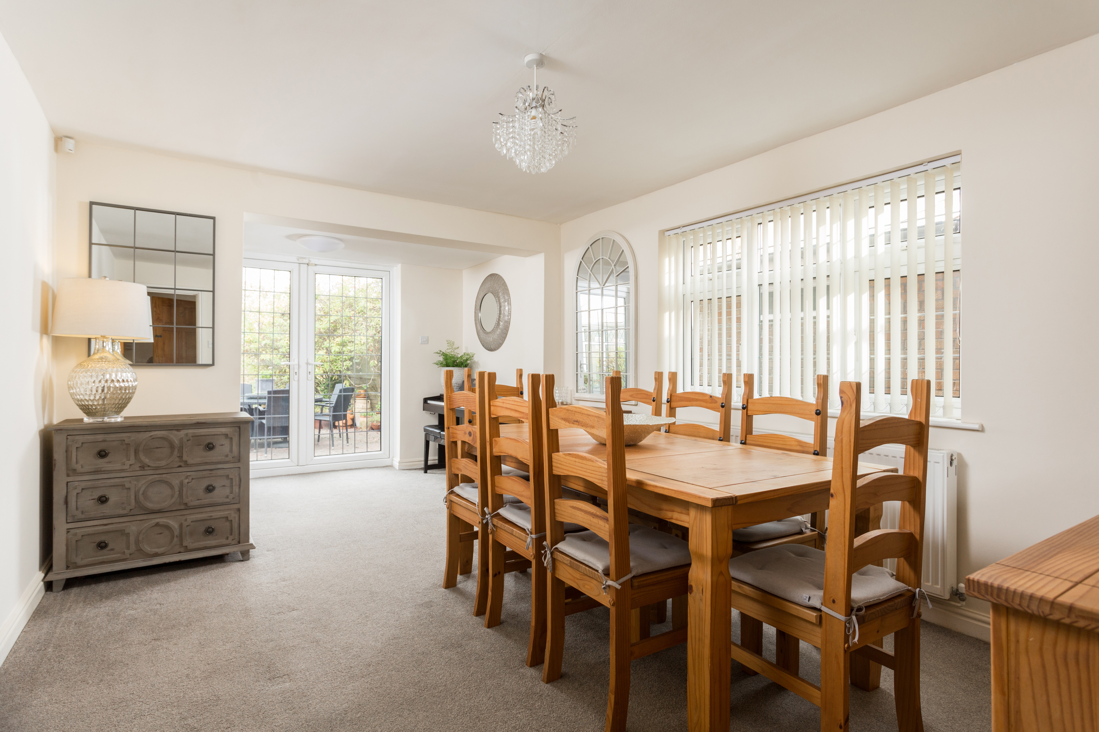 Adjoining the kitchen, this spacious dining area is another naturally light area of the house, with patio doors to the rear and a large side window. Perfect for entertaining, with views over the rear garden to enjoy while dining and a flow which connects it back to the main hall.