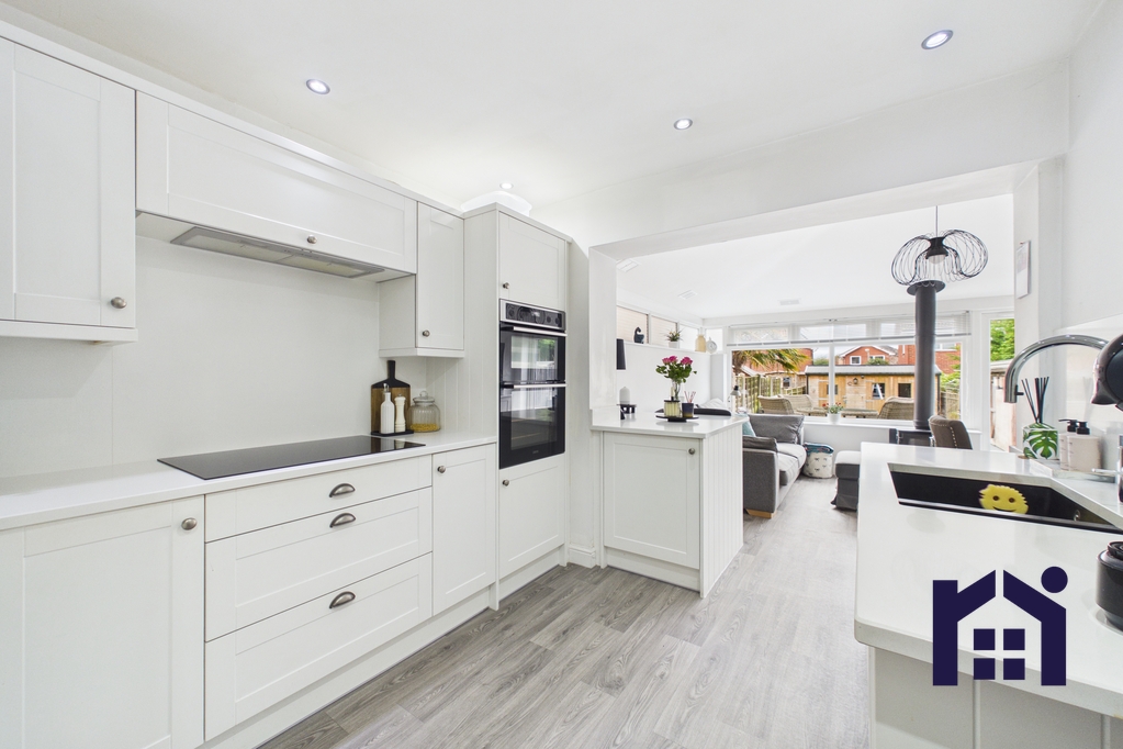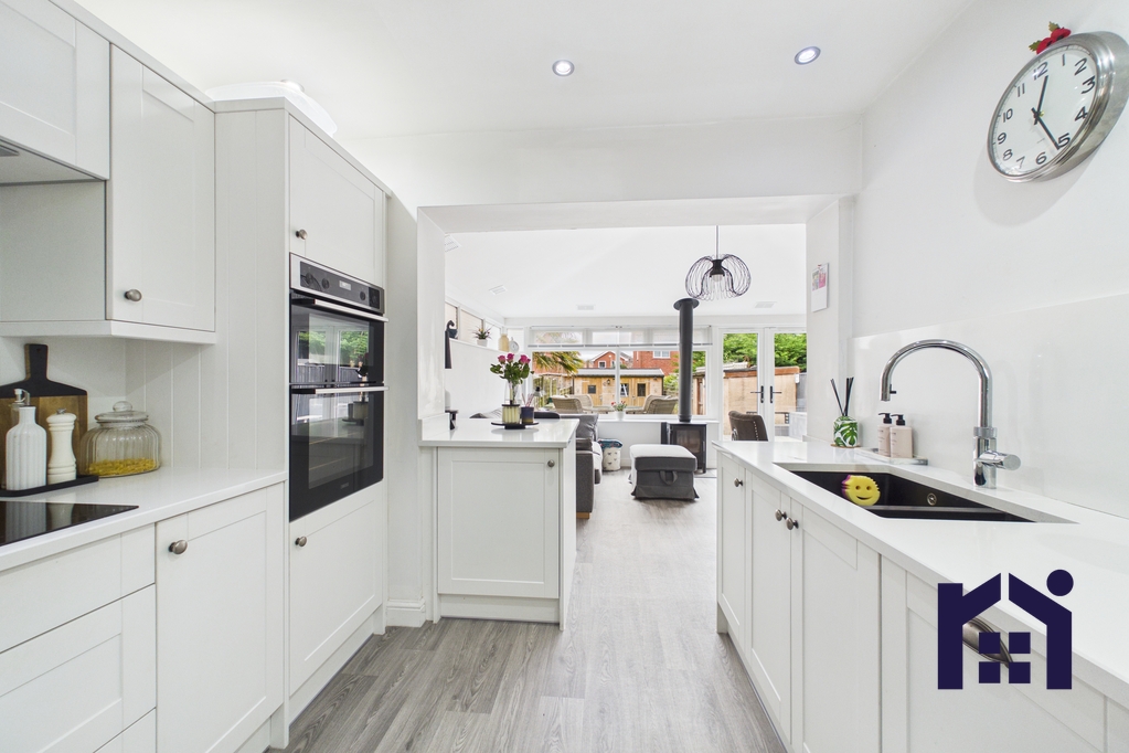 A beautifully presented and thoughtfully extended home offering stylish interiors, an impressive open-plan family space and a south-west facing garden designed for entertaining. With a two-car driveway, high-spec kitchen, cosy living room with media wall and versatile outdoor space including a powered garden workshop, this property perfectly blends comfort with modern family living.