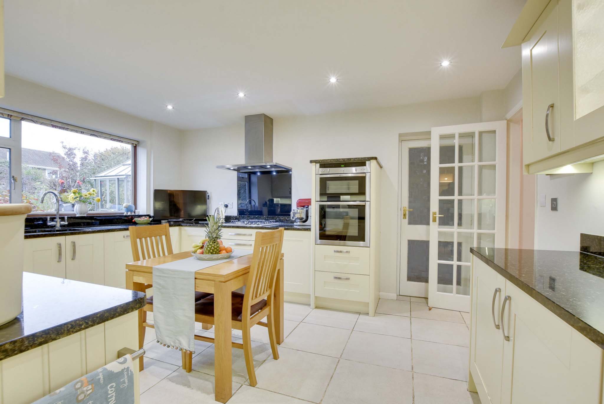 With double glazed window to the rear elevation, tiled floor, wall and base units with under unit lighting and display unit lighting, inset double oven, inset hob with filter hood over, integrated dishwasher, integrated washing machine, integrated fridge, integrated freezer, one and a half bowl sink and drainer unit, convector heater.