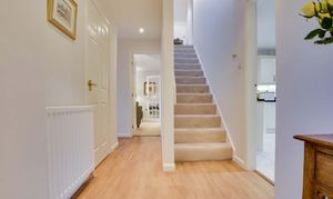 To the first floor, there are two further bedrooms, both with fitted wardrobes, along with a well-appointed family bathroom.