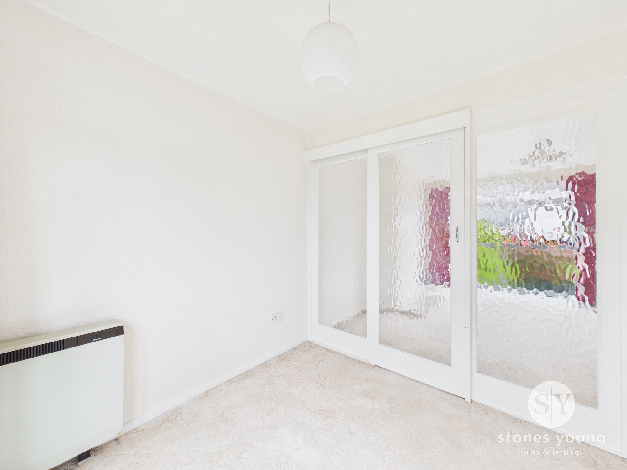 Carpet flooring, electric heater, UPVC double glazed sliding door