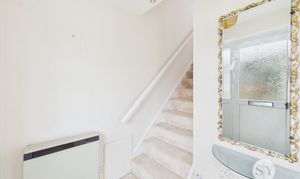 Carpet flooring, electric heater, upvc double glazed frosted door, stairs to first floor