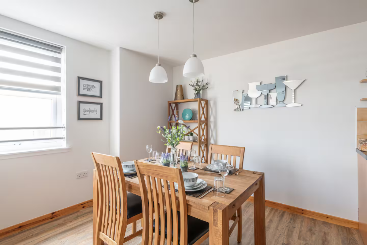 Set in the heart of Inverness city centre, this stylish third-floor flat offers an exceptional opportunity for buyers seeking modern comfort in a highly convenient location. Currently run as a successful holiday let, the property is fully move-in ready and available furnished, providing an effortless turnkey option for investors or those looking for a low-maintenance city home. Its elevated position not only ensures increased privacy and reduced street-level noise but also enhances natural light throughout the space—an appealing feature for guests and residents alike.