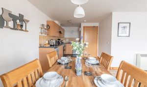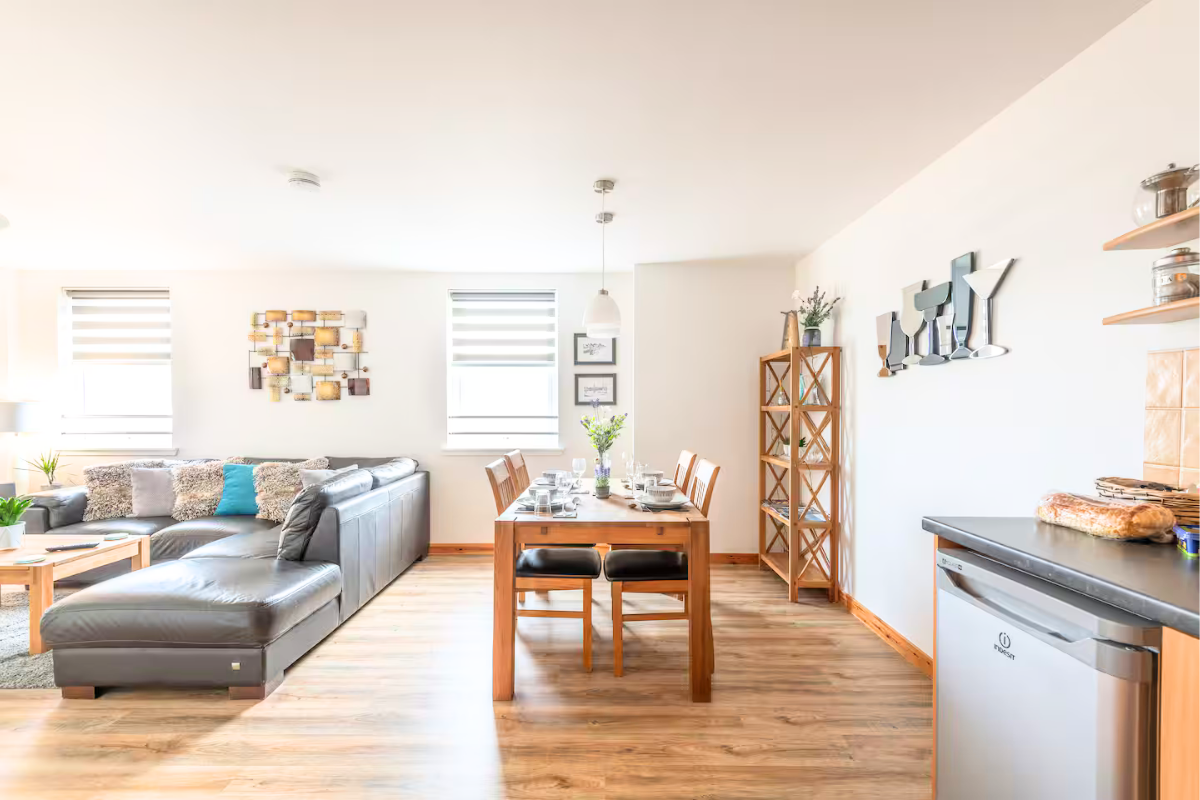 A welcoming hallway leads into a bright, contemporary living room, creating an ideal setting for relaxing or entertaining. The well-designed kitchen offers excellent storage and generous worktop space, combining style with practical functionality for everyday living or short-stay guests. Two true double bedrooms provide comfortable proportions for couples, friends, or families, while the modern family bathroom is finished with clean, stylish fittings that suit both long-term and holiday use.