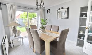Situated in a tranquil cul-de-sac, the property offers a serene escape from the hustle and bustle of daily life. The attractive rear garden is thoughtfully landscaped and includes a charming patio area, ideal for al fresco dining and outdoor enjoyment.