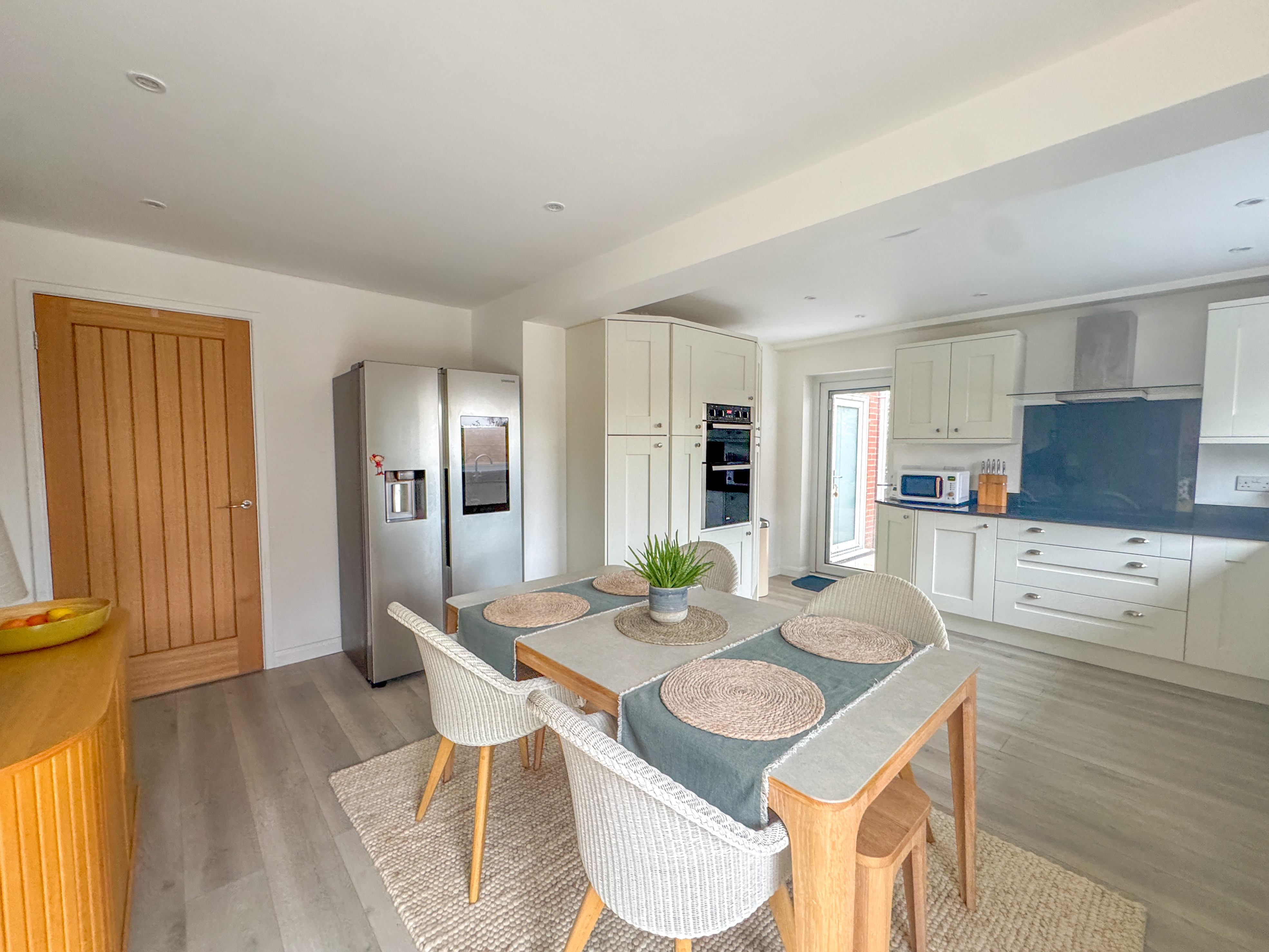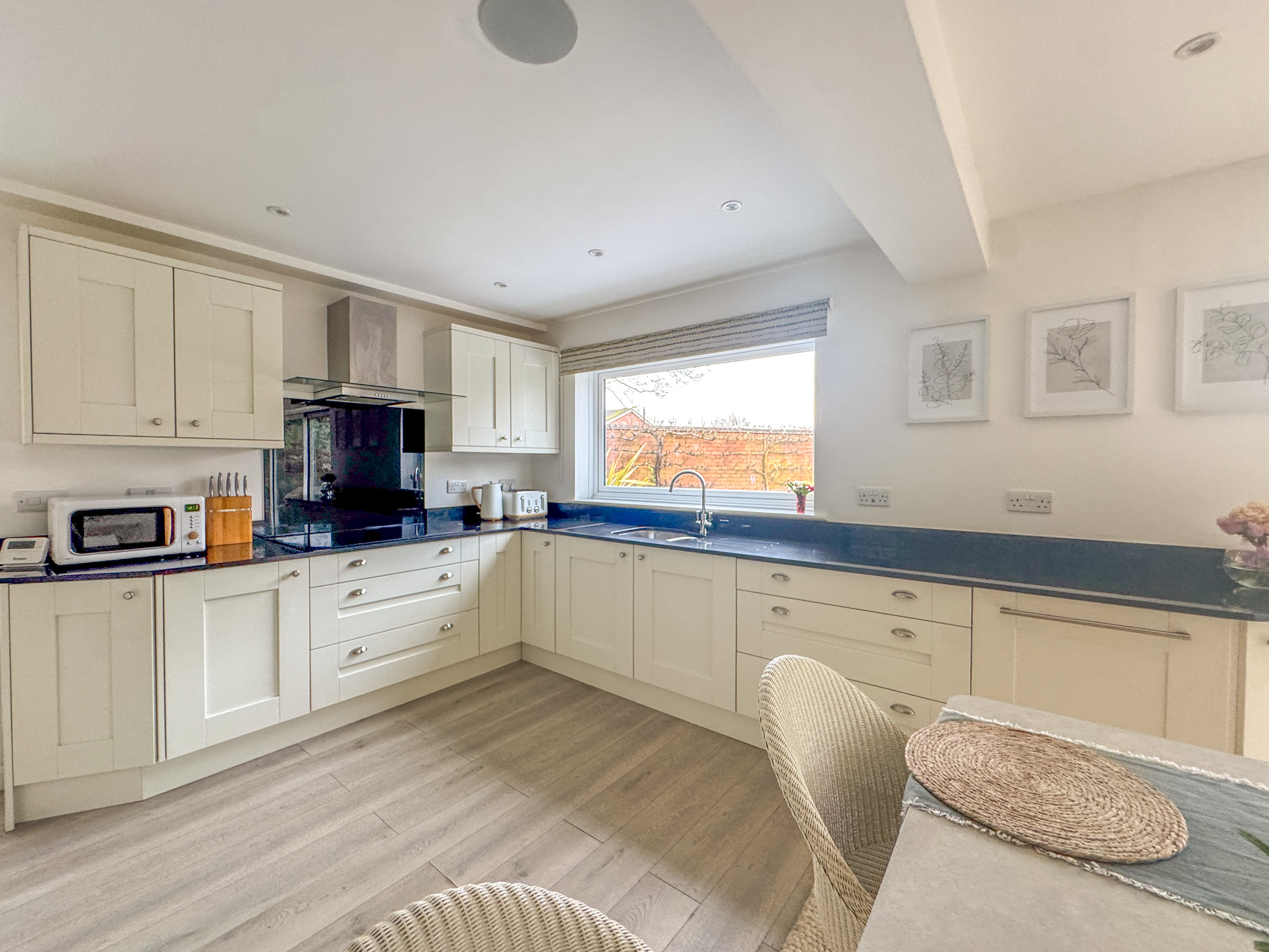 The heart of the home is the stunning open-plan kitchen/dining space, which has been transformed into a high-spec, contemporary space perfect for both everyday family life and entertaining. Boasting an extensive range of shaker-style in-frame units and granite worktops the kitchen includes integrated appliances such as a double oven, induction hob, dishwasher, and wine cooler.